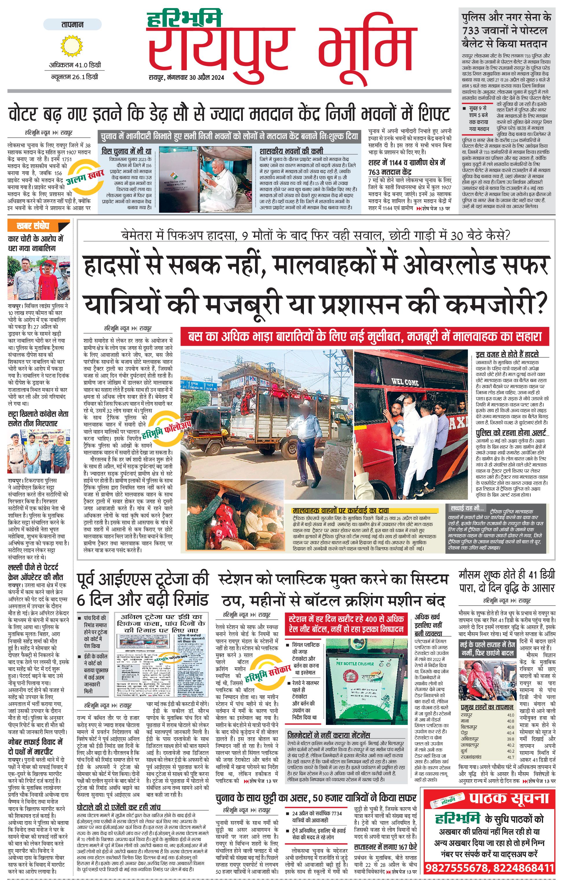 रायपुर भूमि - 30 Apr 2024 - - Page 1