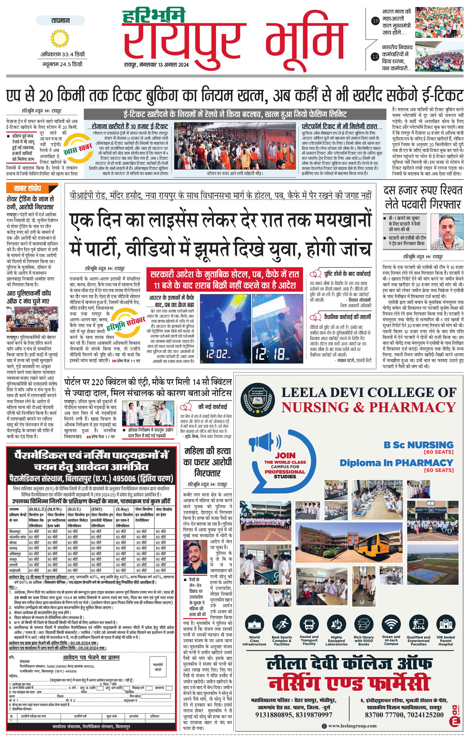 रायपुर भूमि - 13 Aug 2024 - - Page 1