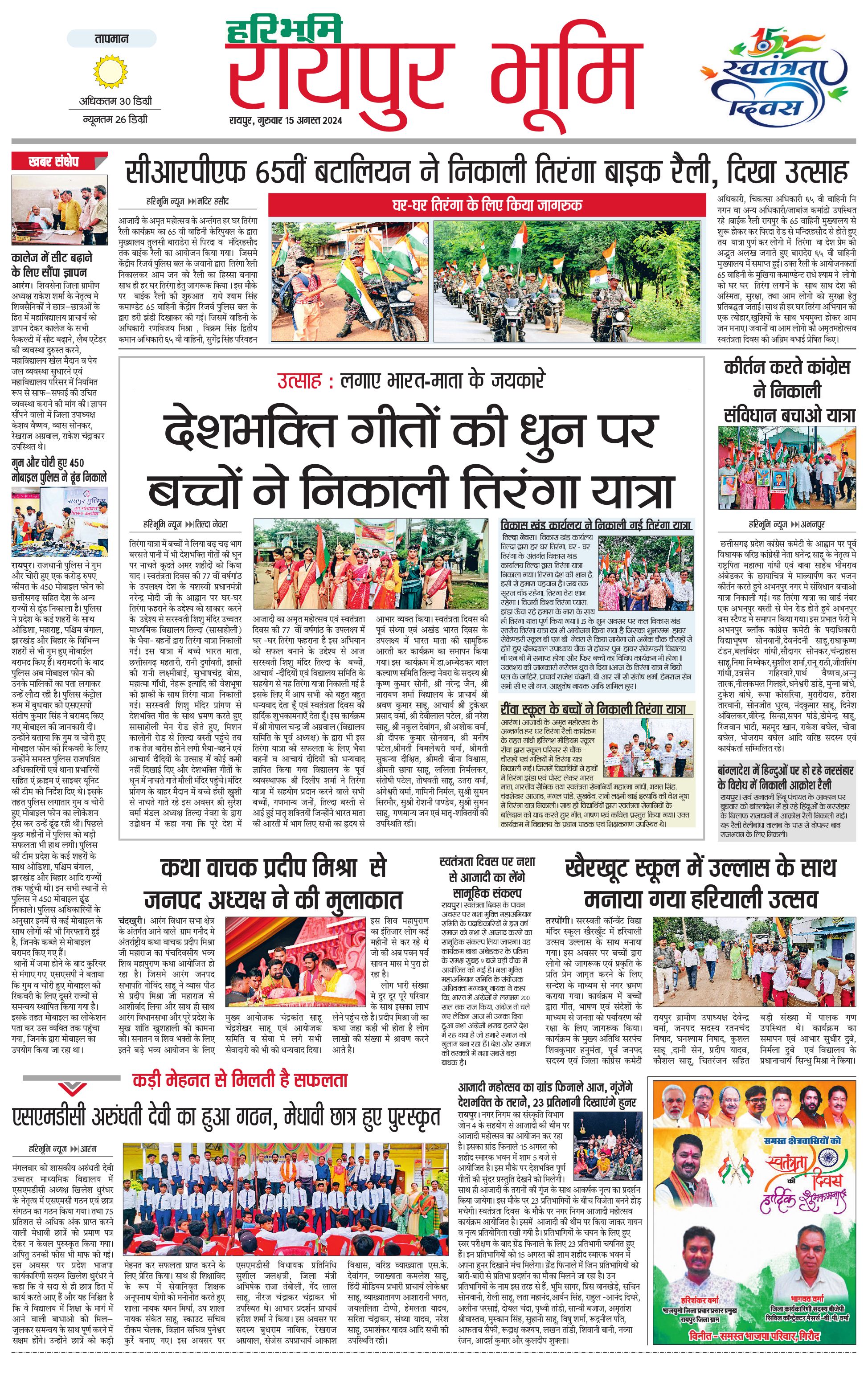 रायपुर भूमि - 15 Aug 2024 - - Page 1