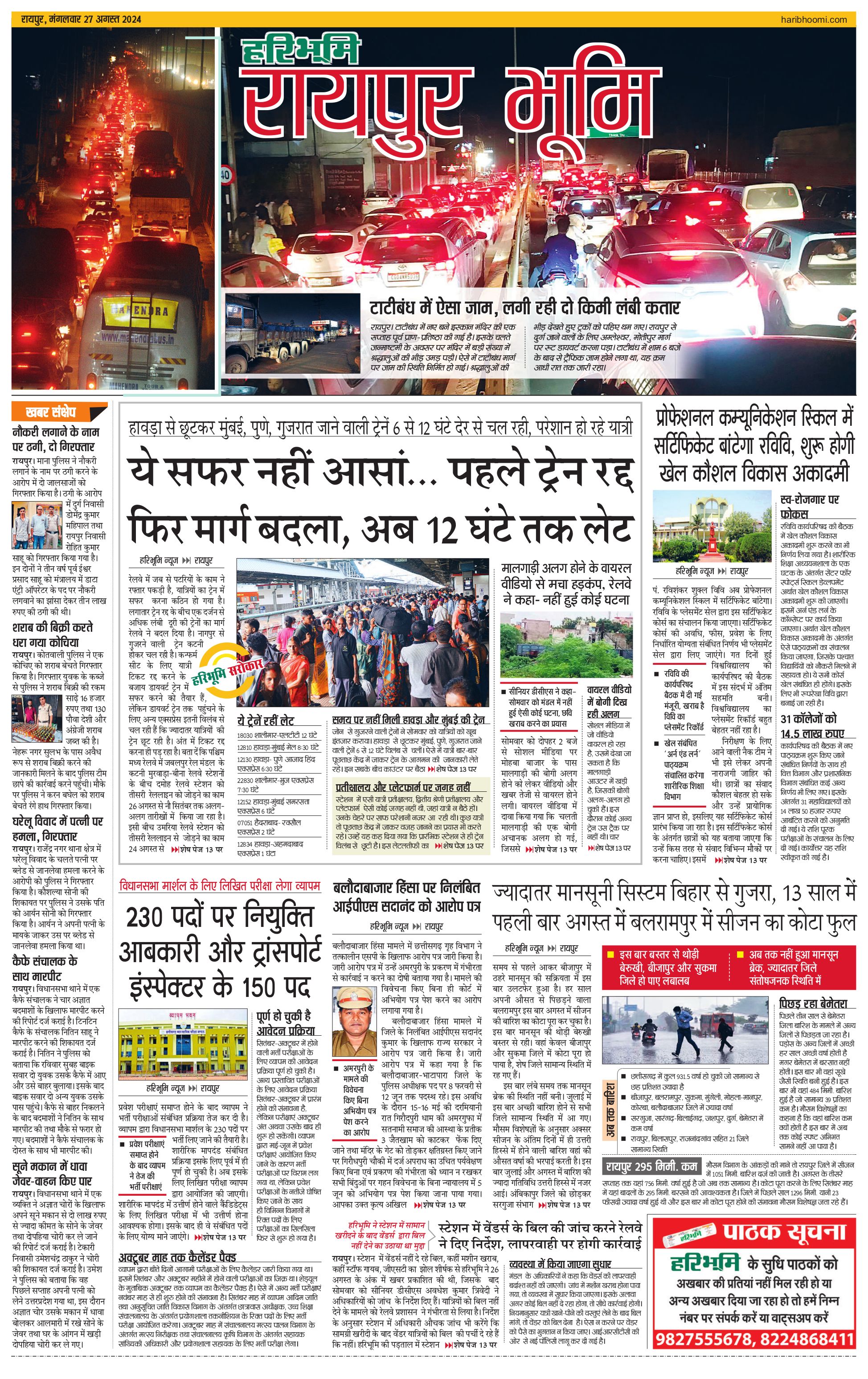 रायपुर भूमि - 27 Aug 2024 - - Page 1