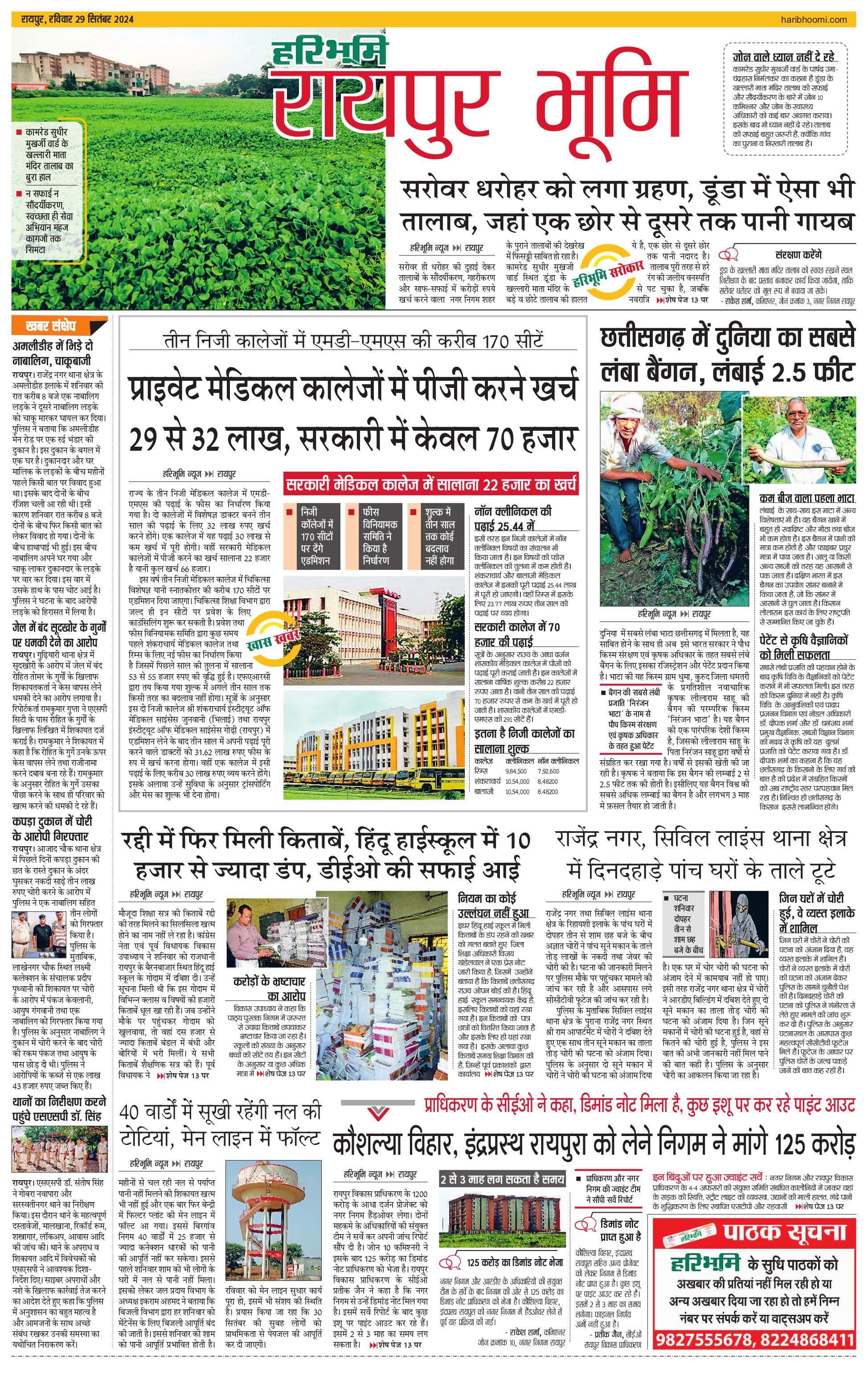 रायपुर भूमि - 29 Sep 2024 - - Page 1