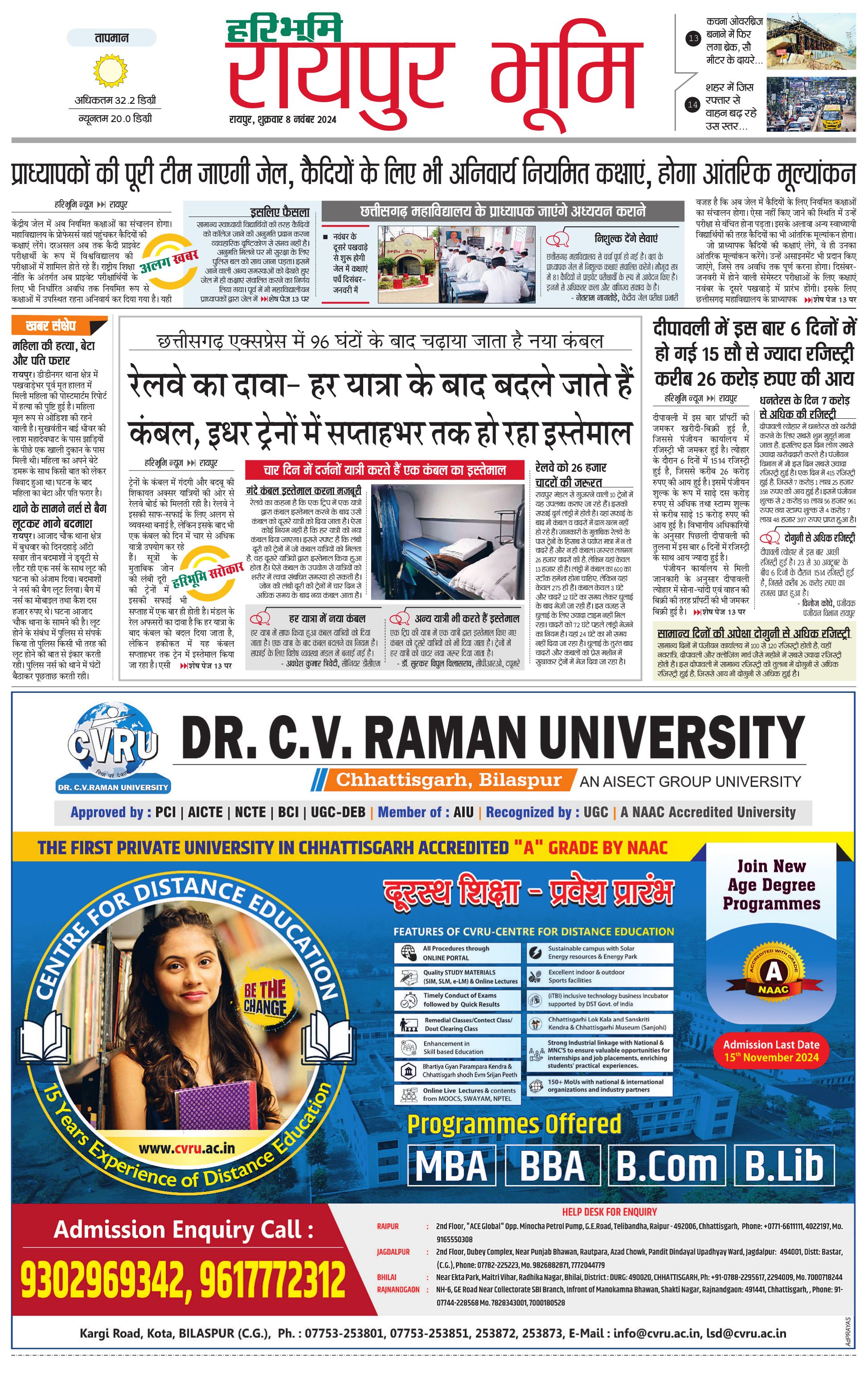 रायपुर भूमि - 08 Nov 2024 - - Page 1