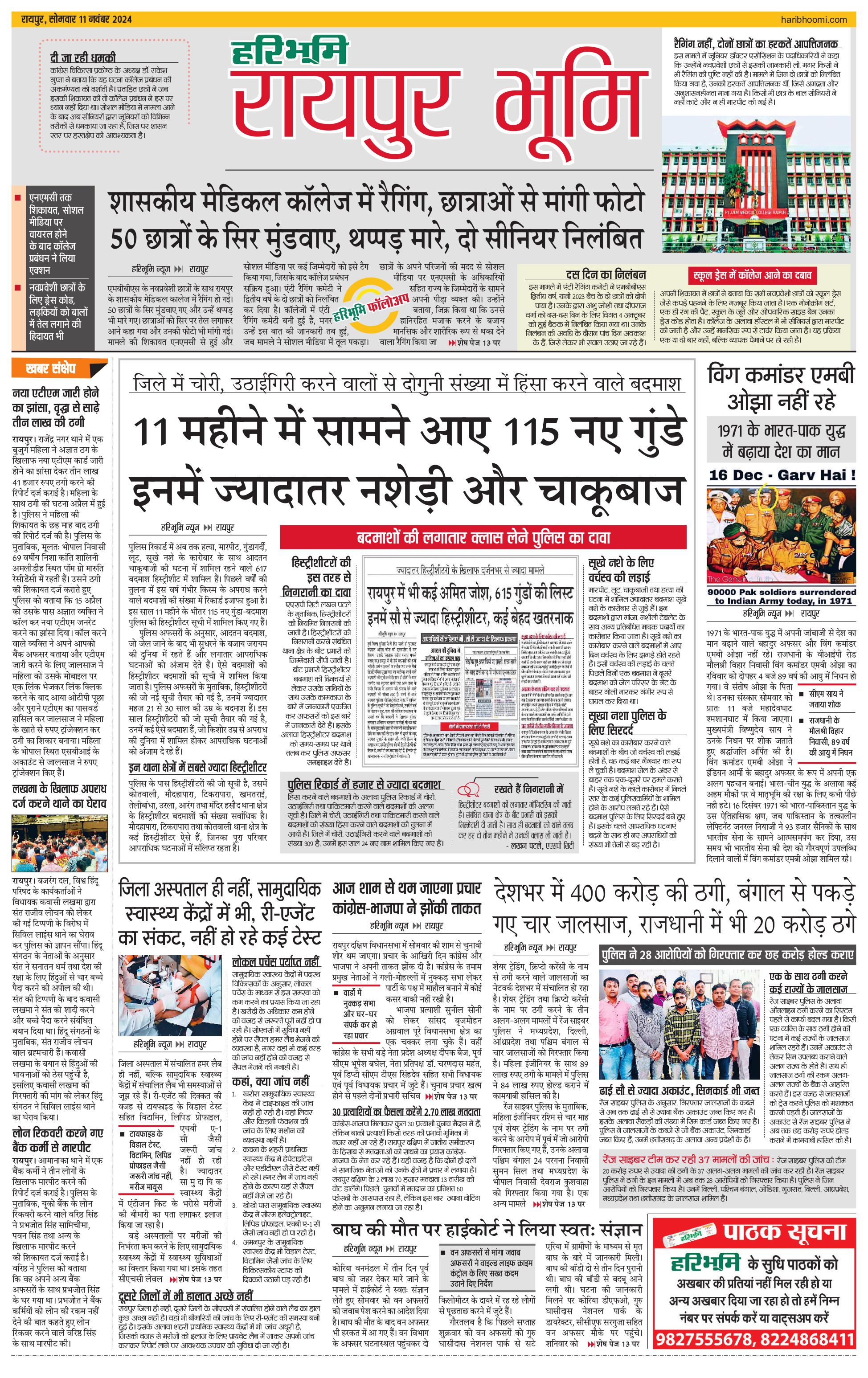 रायपुर भूमि - 11 Nov 2024 - - Page 1