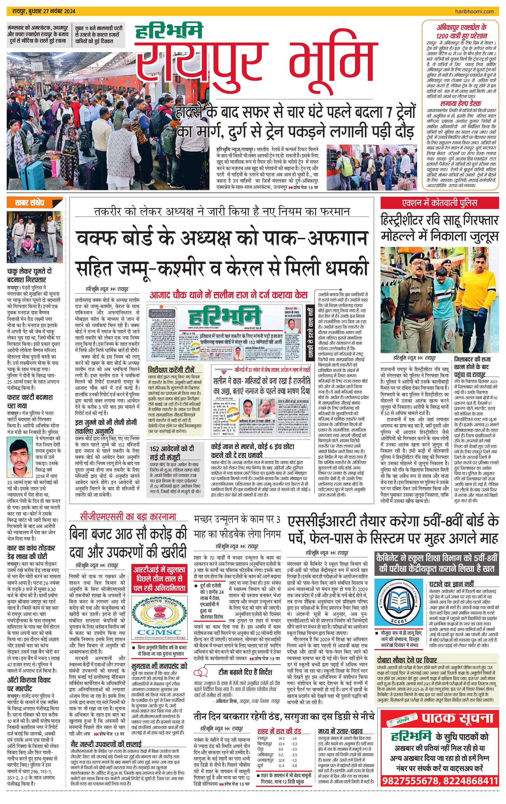 रायपुर भूमि - 27 Nov 2024 - - Page 1