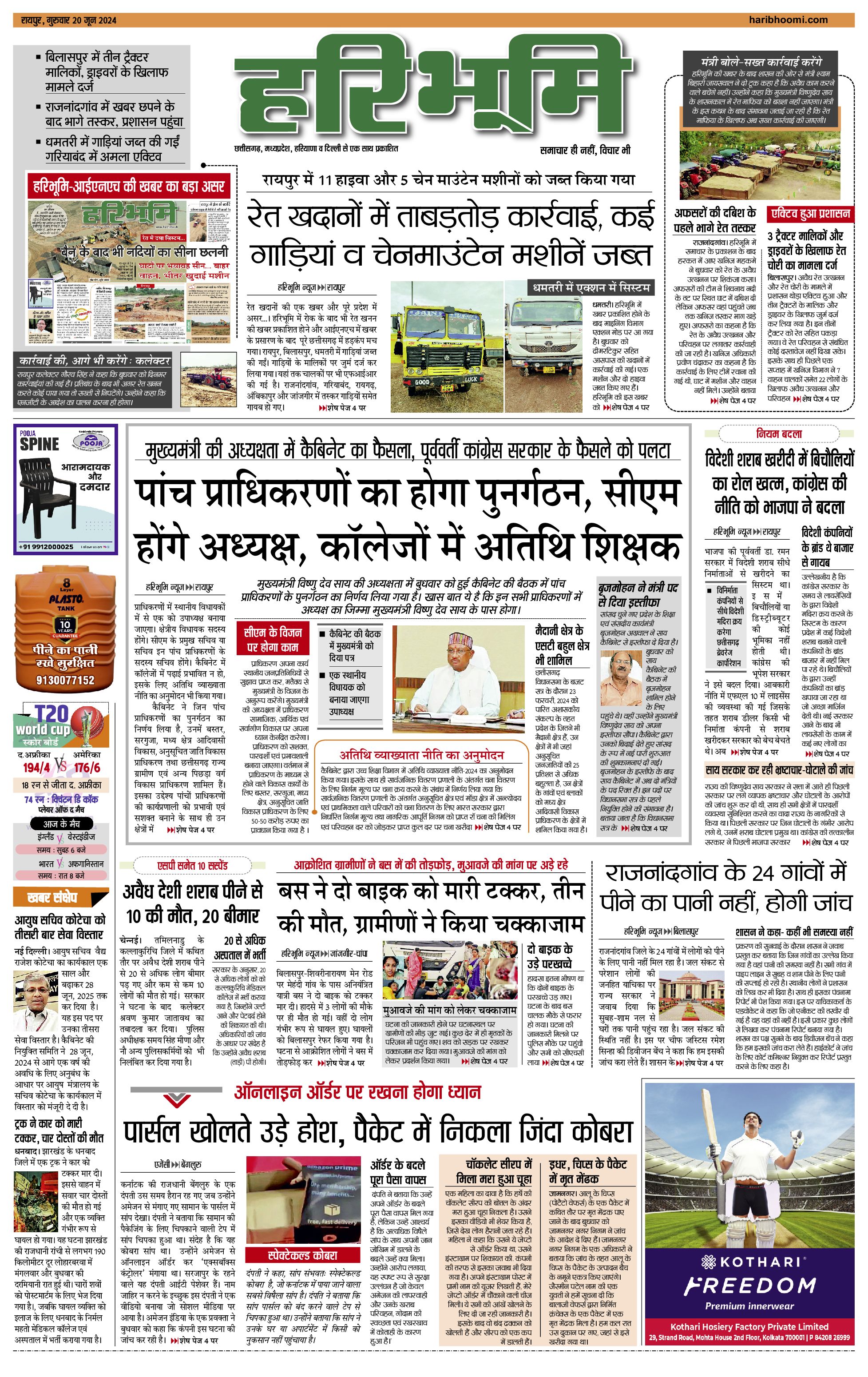 रायपुर मुख्य संस्करण - 20 Jun 2024 - - Page 1