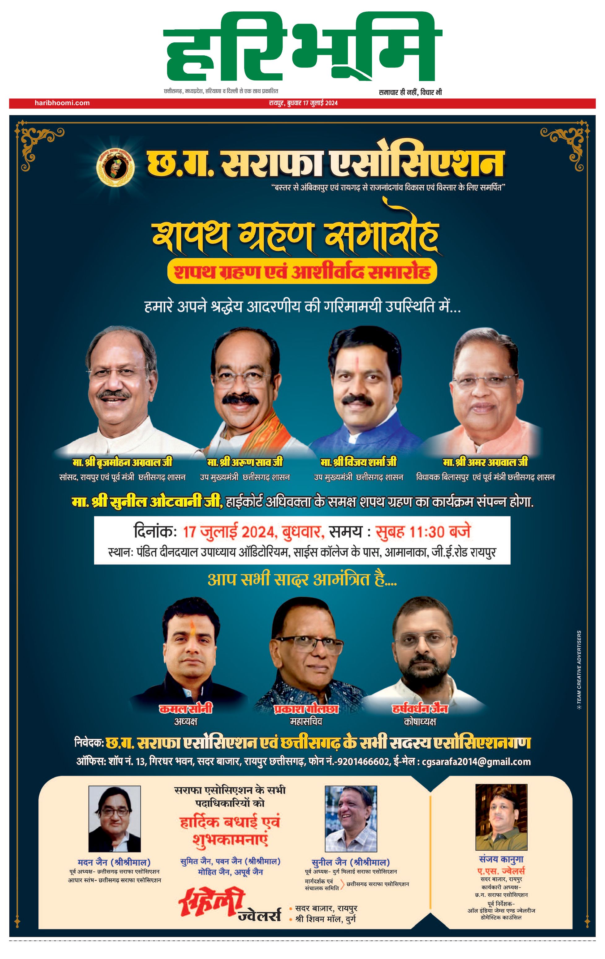 रायपुर मुख्य संस्करण - 17 Jul 2024 - - Page 1
