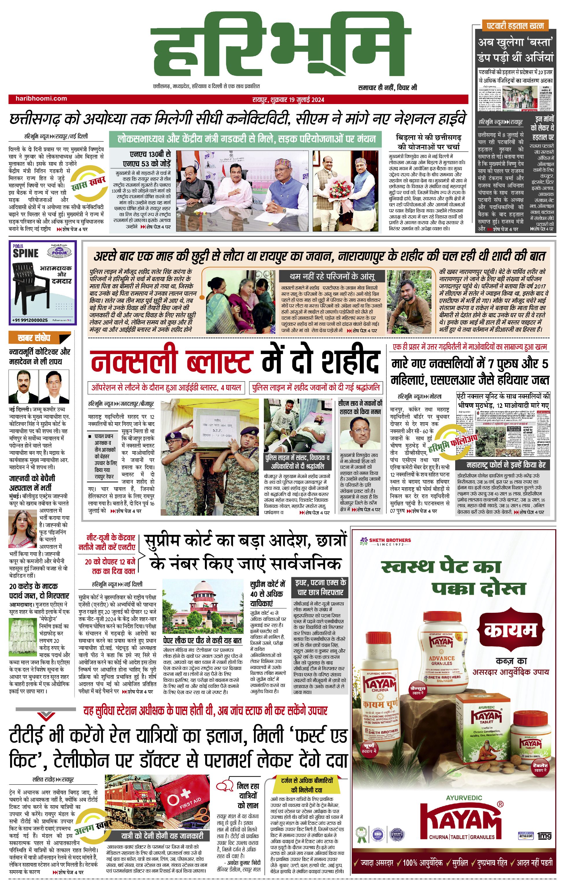 रायपुर मुख्य संस्करण - 19 Jul 2024 - - Page 1
