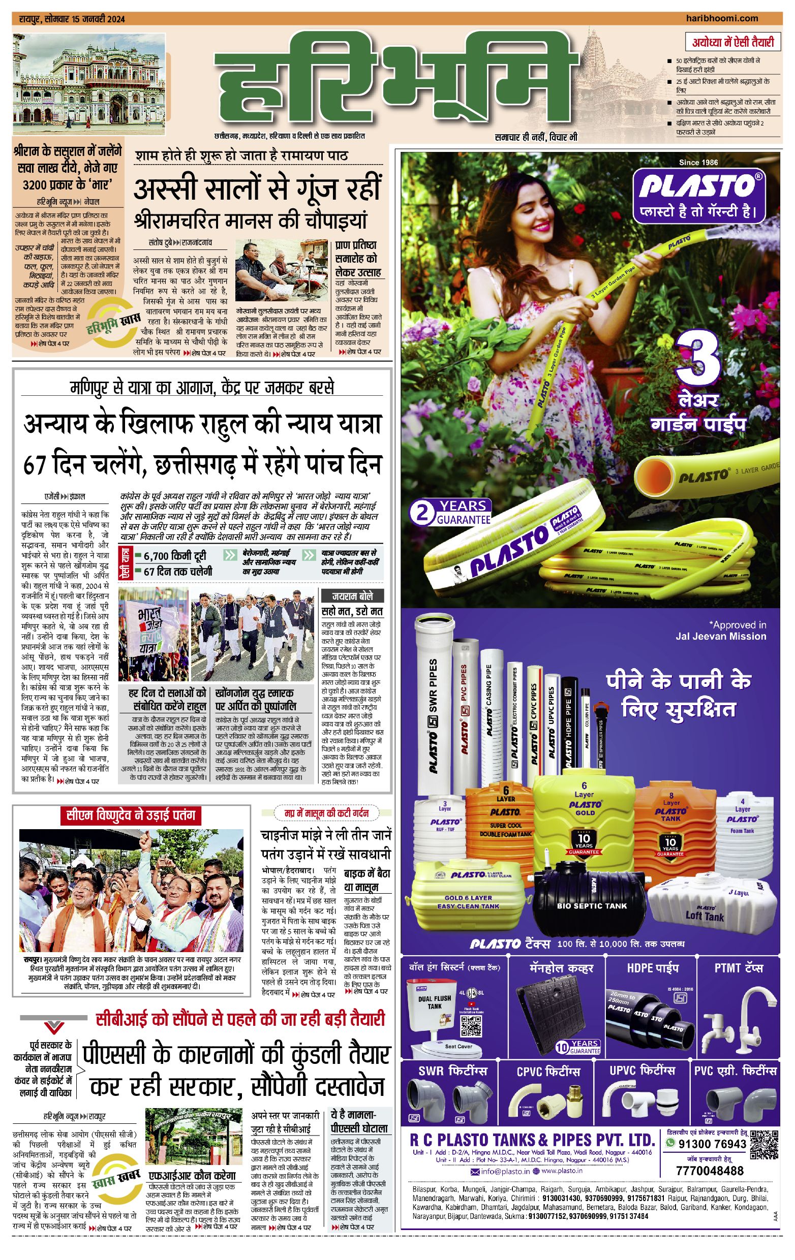 रायपुर मुख्य संस्करण - 15 Jan 2024 - - Page 1