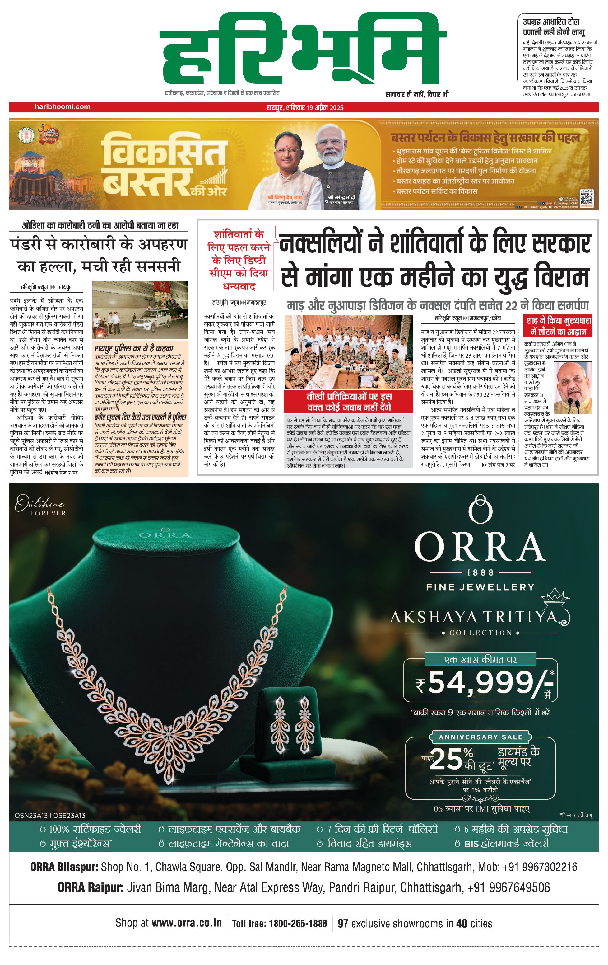 रायपुर मुख्य संस्करण - 19 Apr 2025 - - Page 1