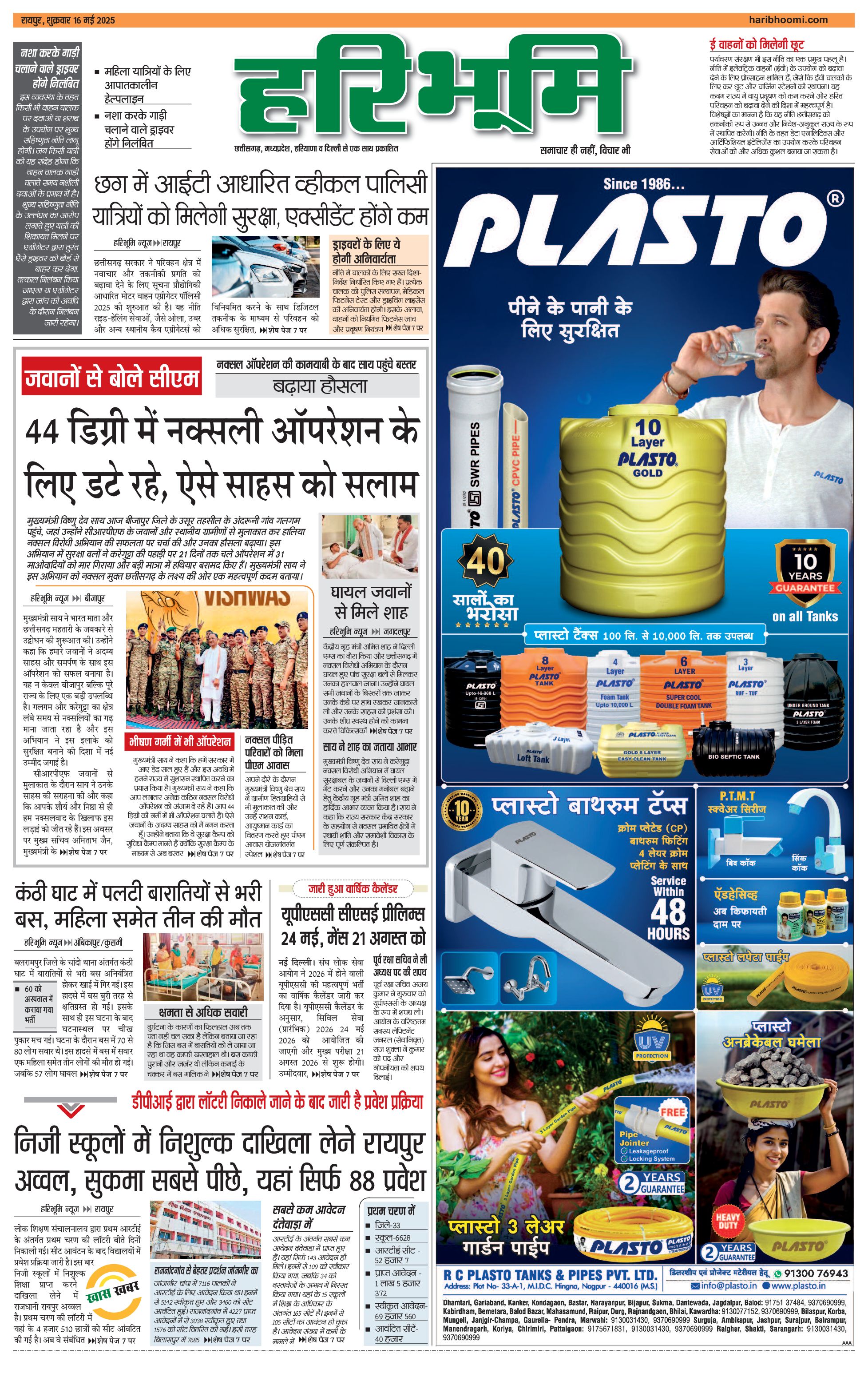 रायपुर मुख्य संस्करण - 16 May 2025 - - Page 1
