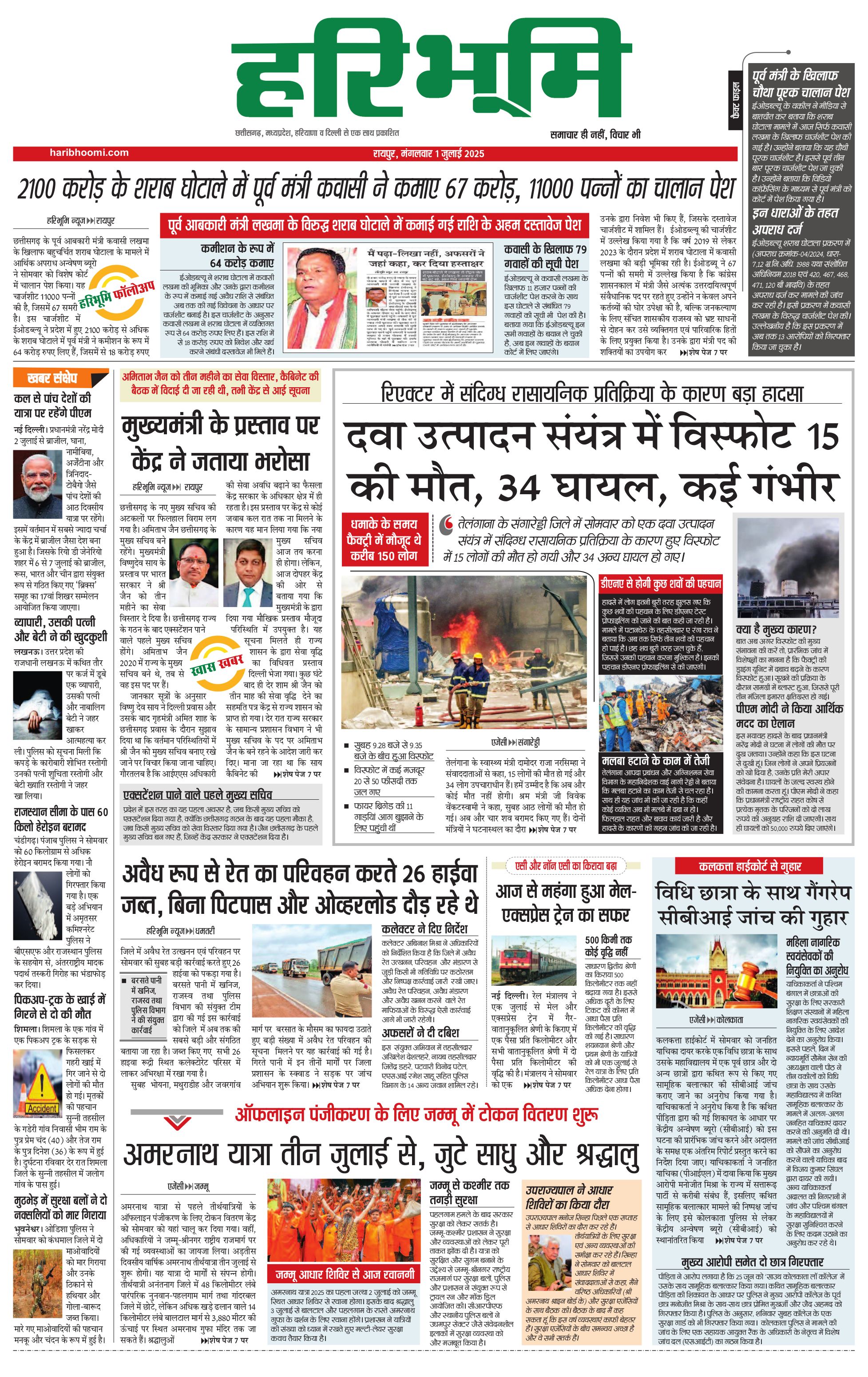 रायपुर मुख्य संस्करण - 01 Jul 2025 - - Page 1