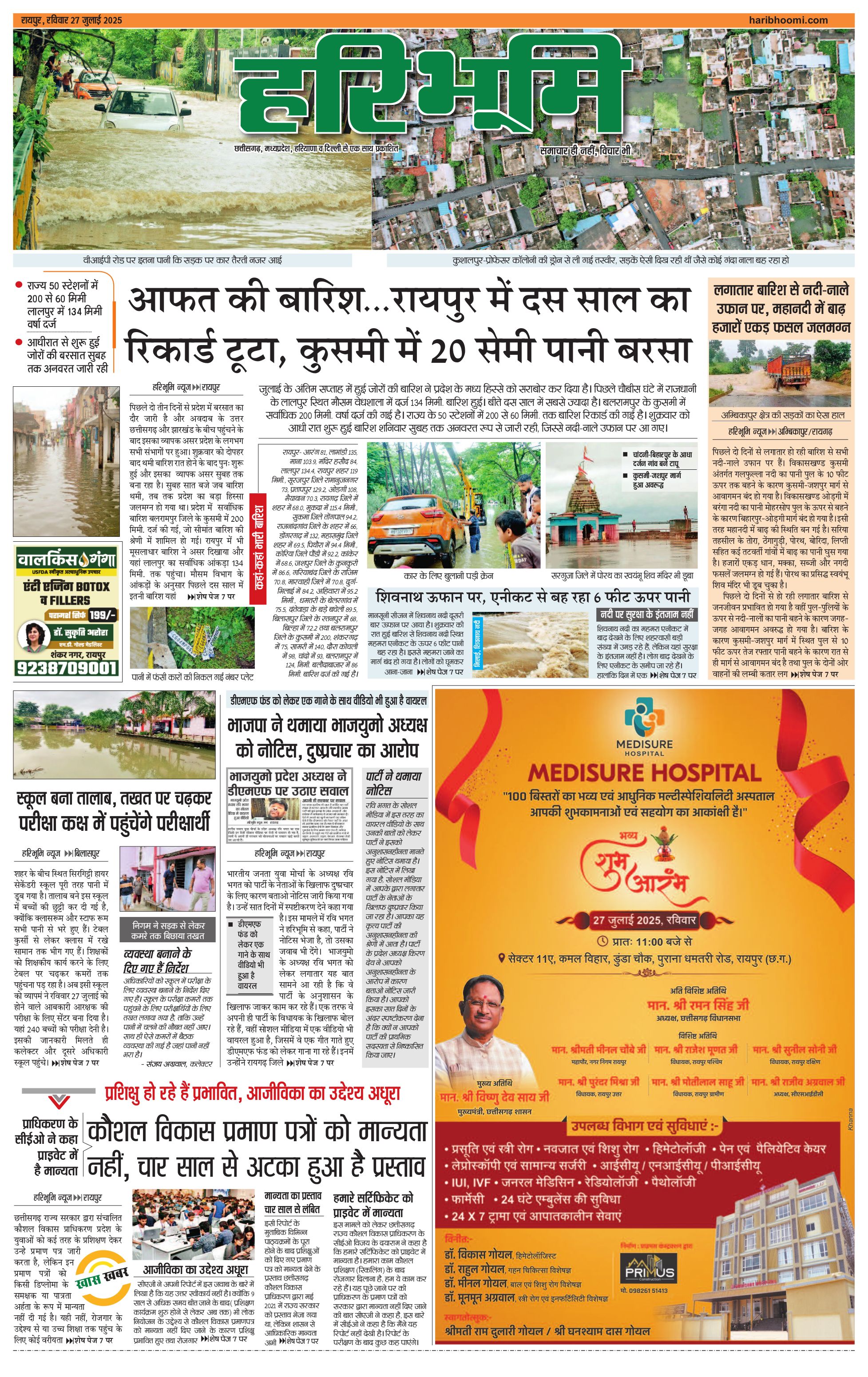 रायपुर मुख्य संस्करण - 27 Jul 2025 - - Page 1