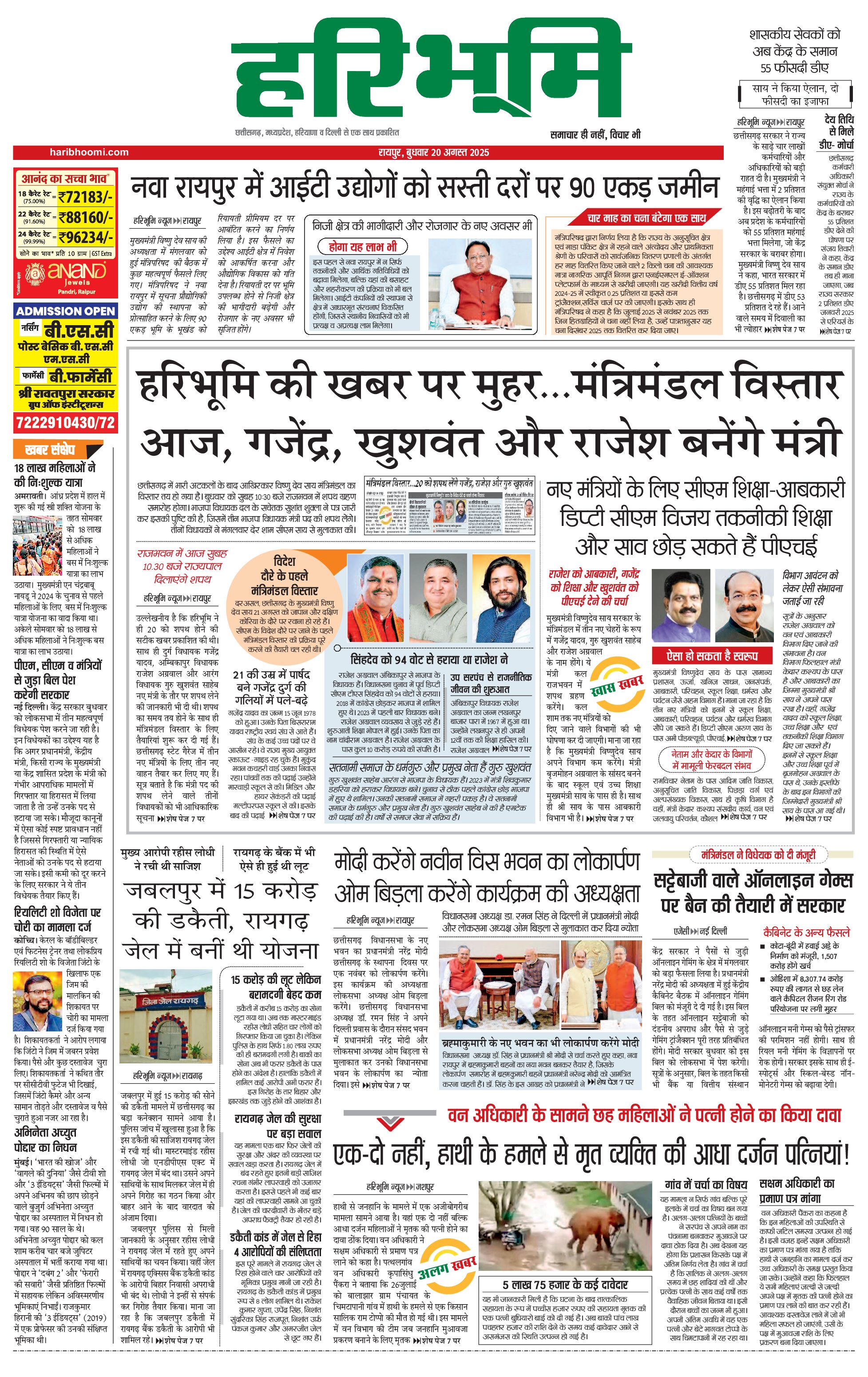 रायपुर मुख्य संस्करण - 20 Aug 2025 - - Page 1