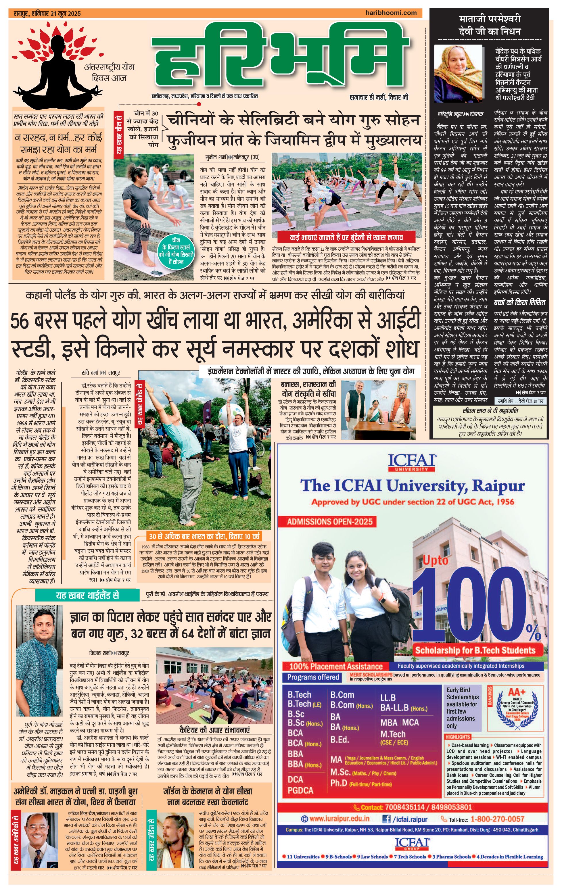 रायपुर मुख्य संस्करण - 21 Jun 2025 - - Page 1