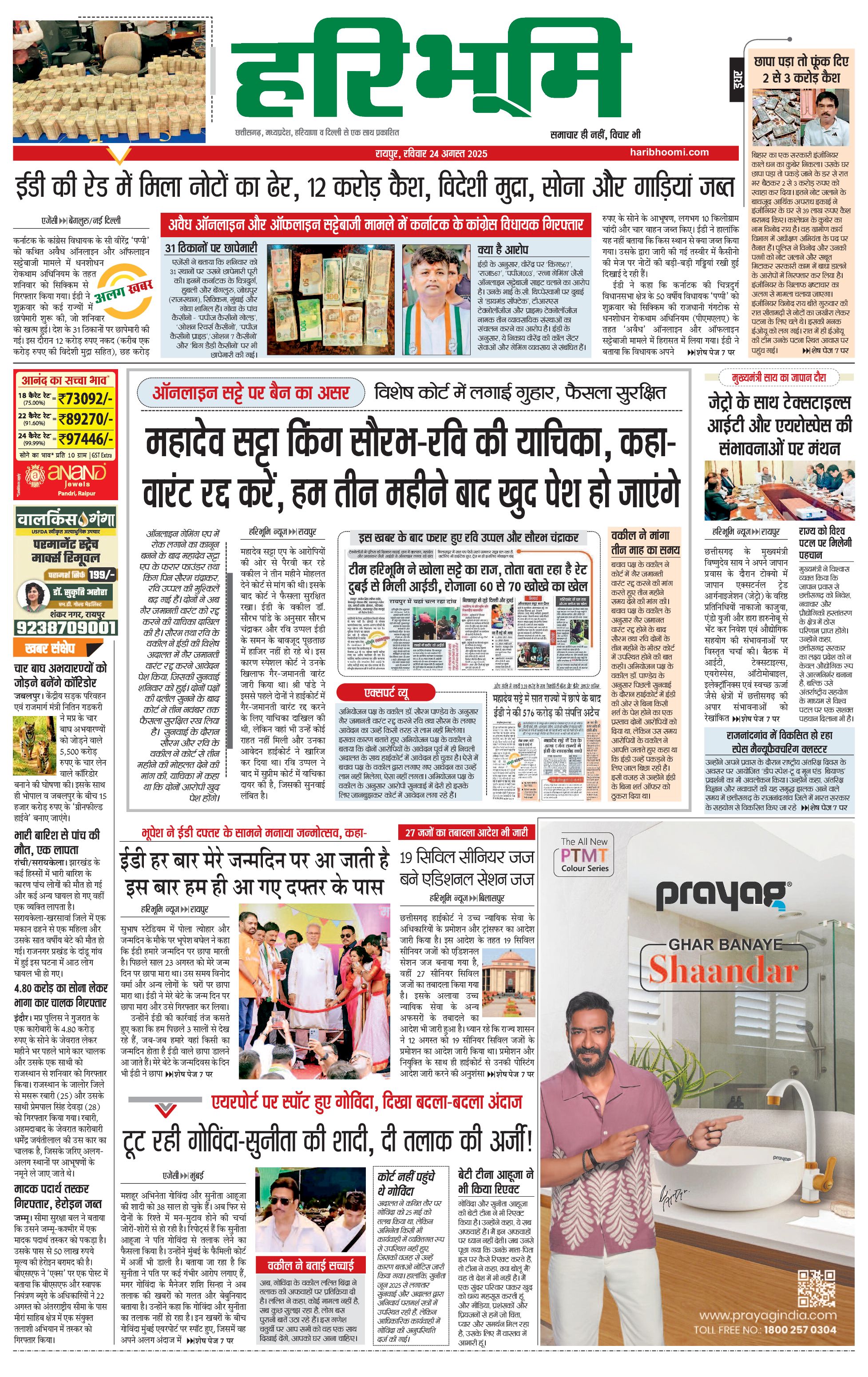 रायपुर मुख्य संस्करण - 24 Aug 2025 - - Page 1