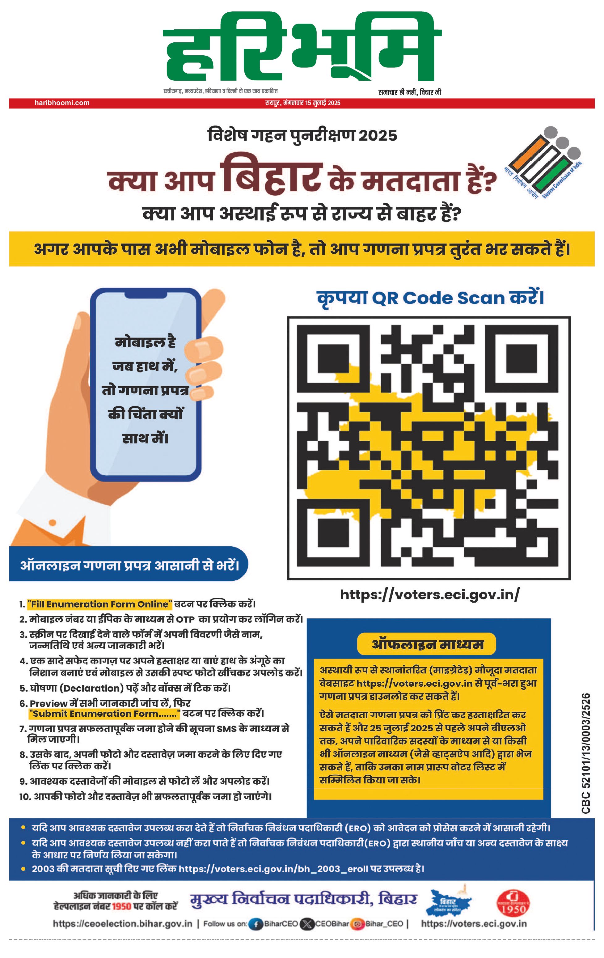 रायपुर मुख्य संस्करण - 15 Jul 2025 - - Page 1