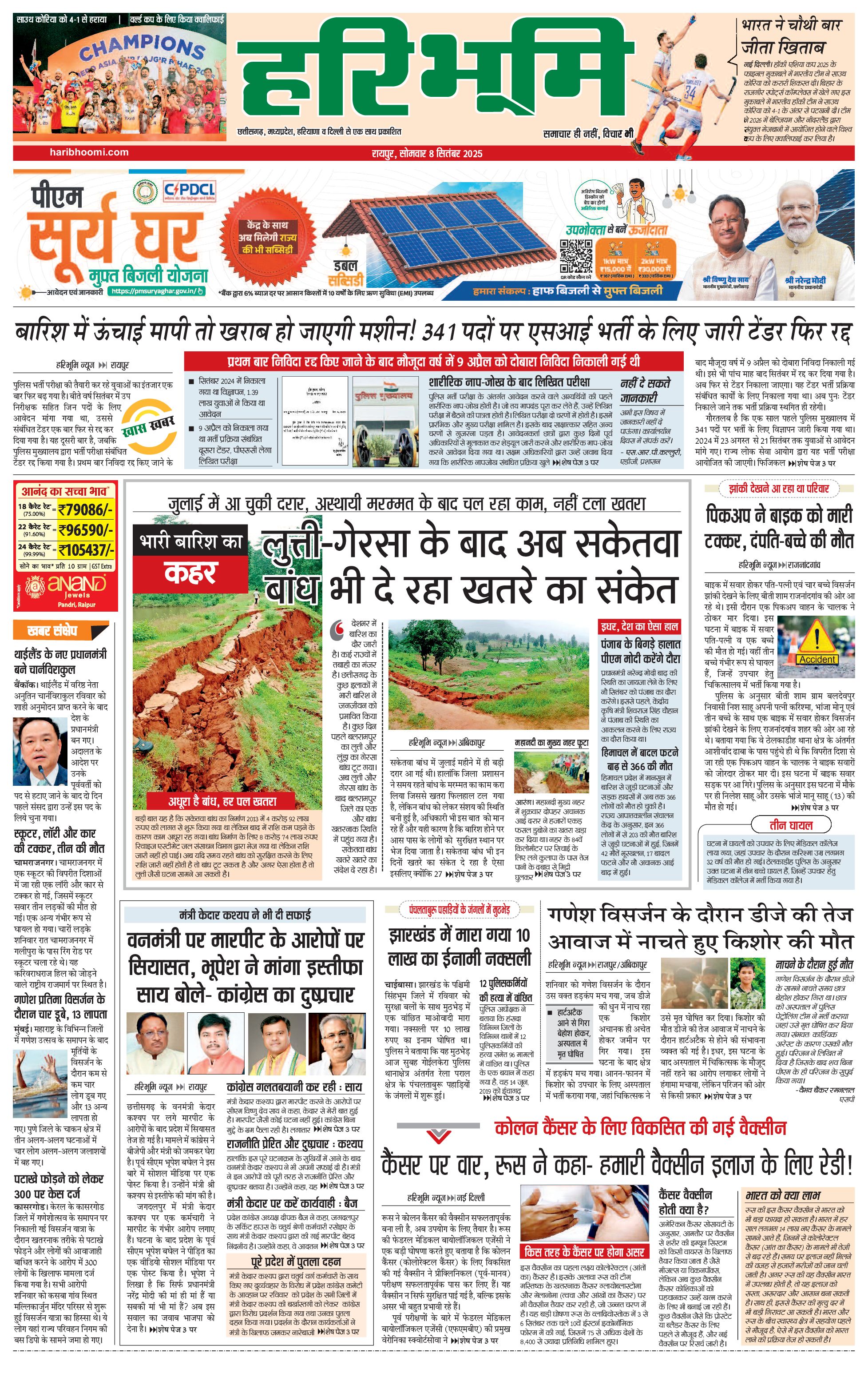 रायपुर मुख्य संस्करण - 08 Sep 2025 - - Page 1