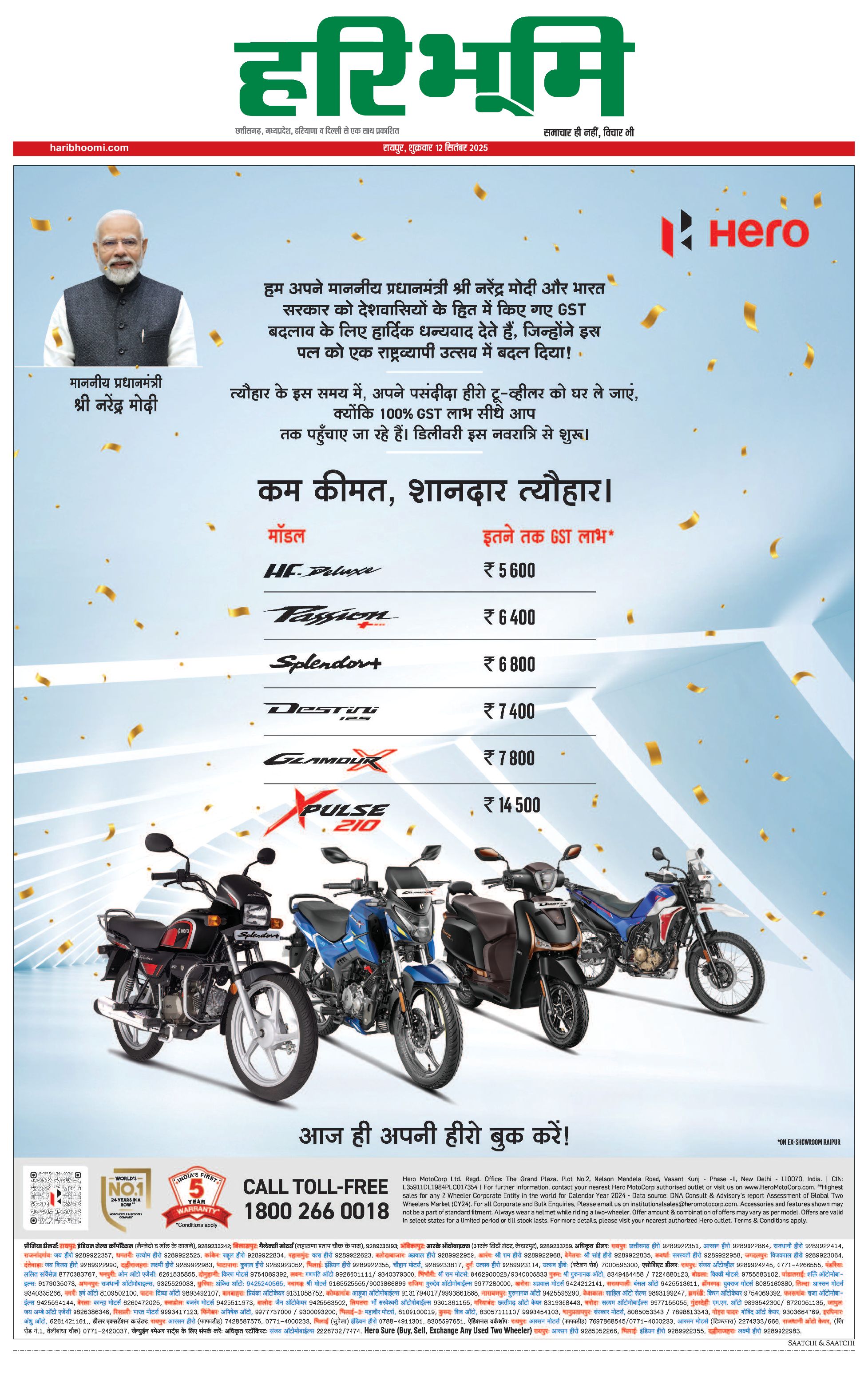 रायपुर मुख्य संस्करण - 12 Sep 2025 - - Page 1