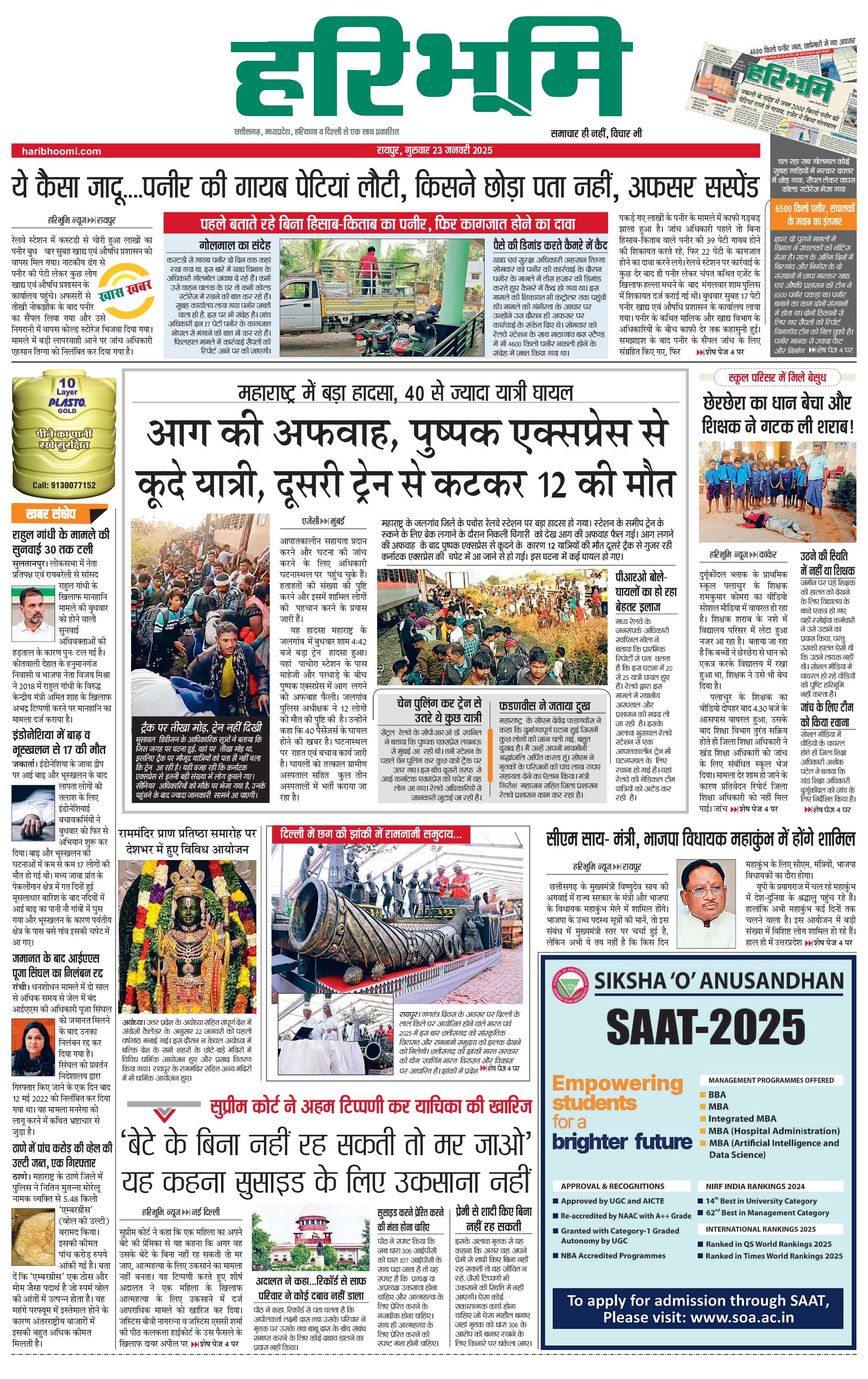 रायपुर मुख्य संस्करण - 23 Jan 2025 - - Page 1