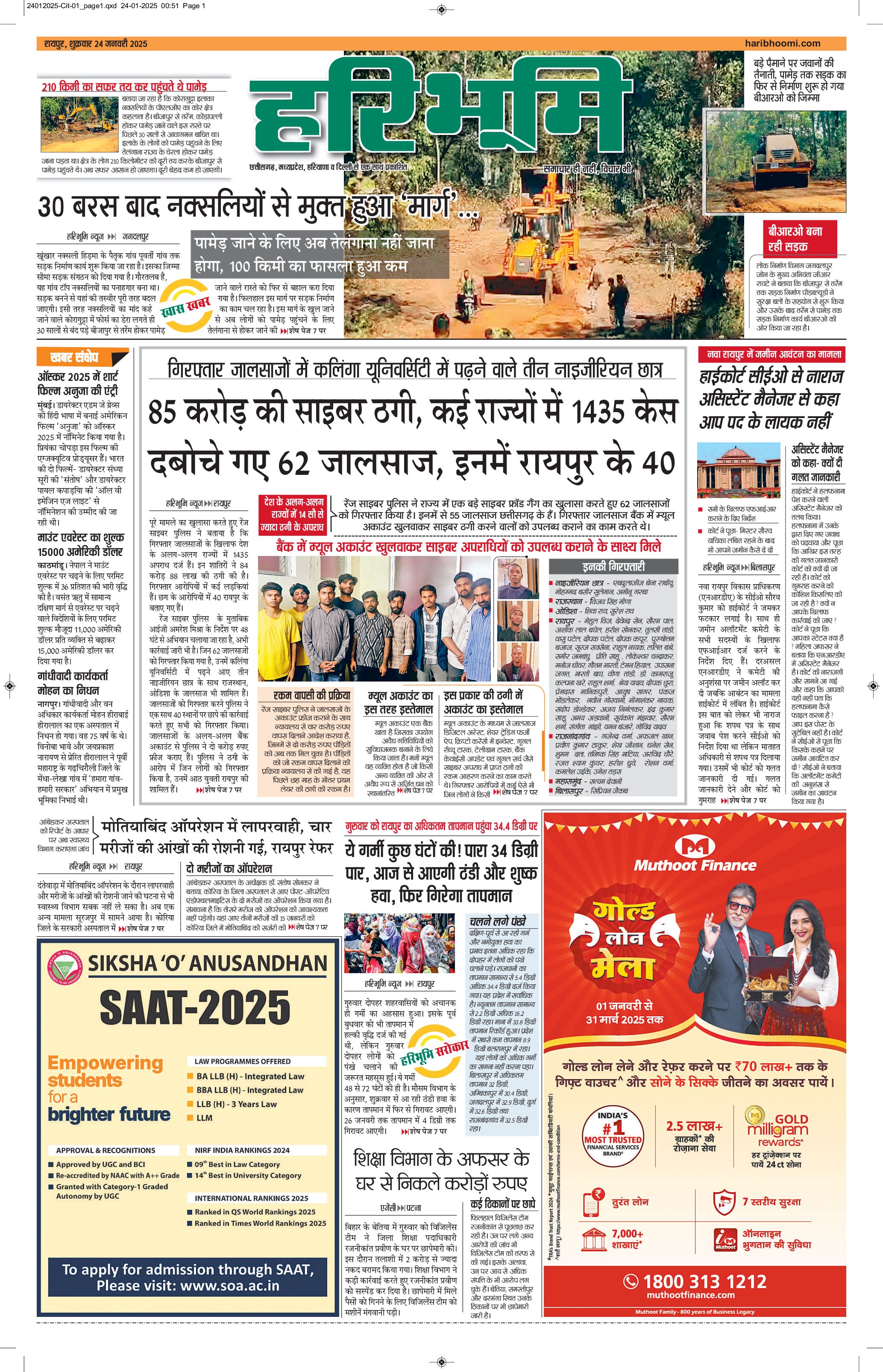 रायपुर मुख्य संस्करण - 24 Jan 2025 - - Page 1