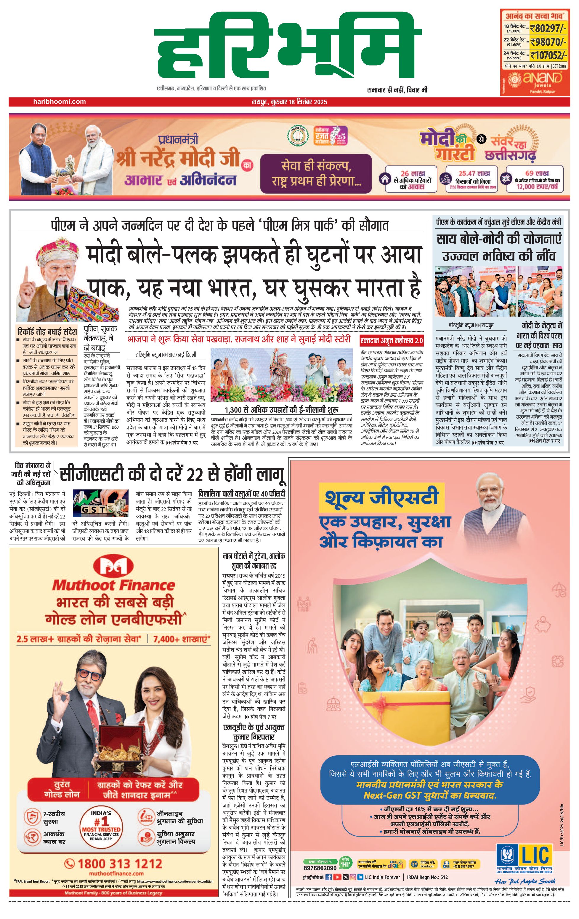 रायपुर मुख्य संस्करण - 18 Sep 2025 - - Page 1
