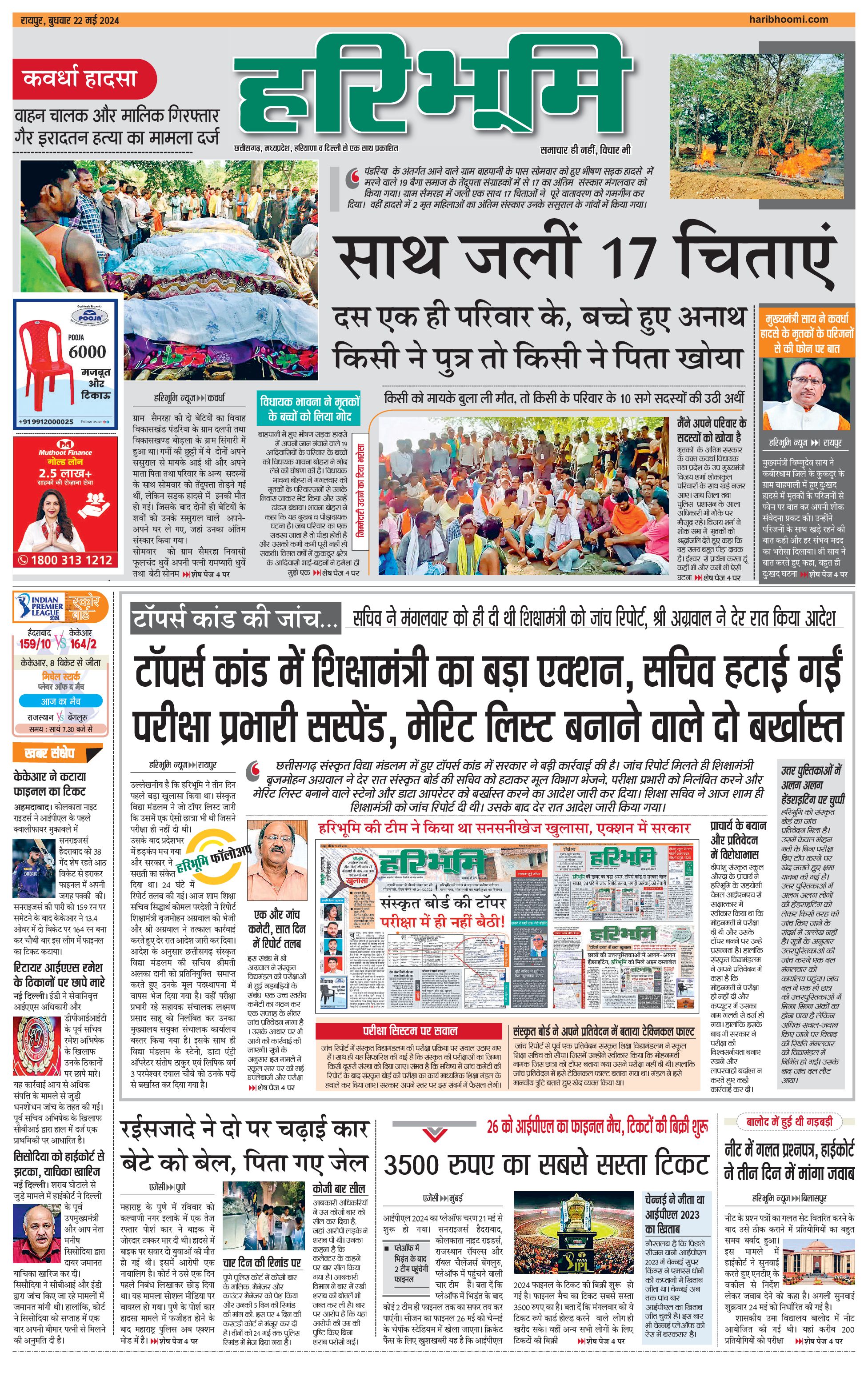 रायपुर मुख्य संस्करण - 22 May 2024 - - Page 1