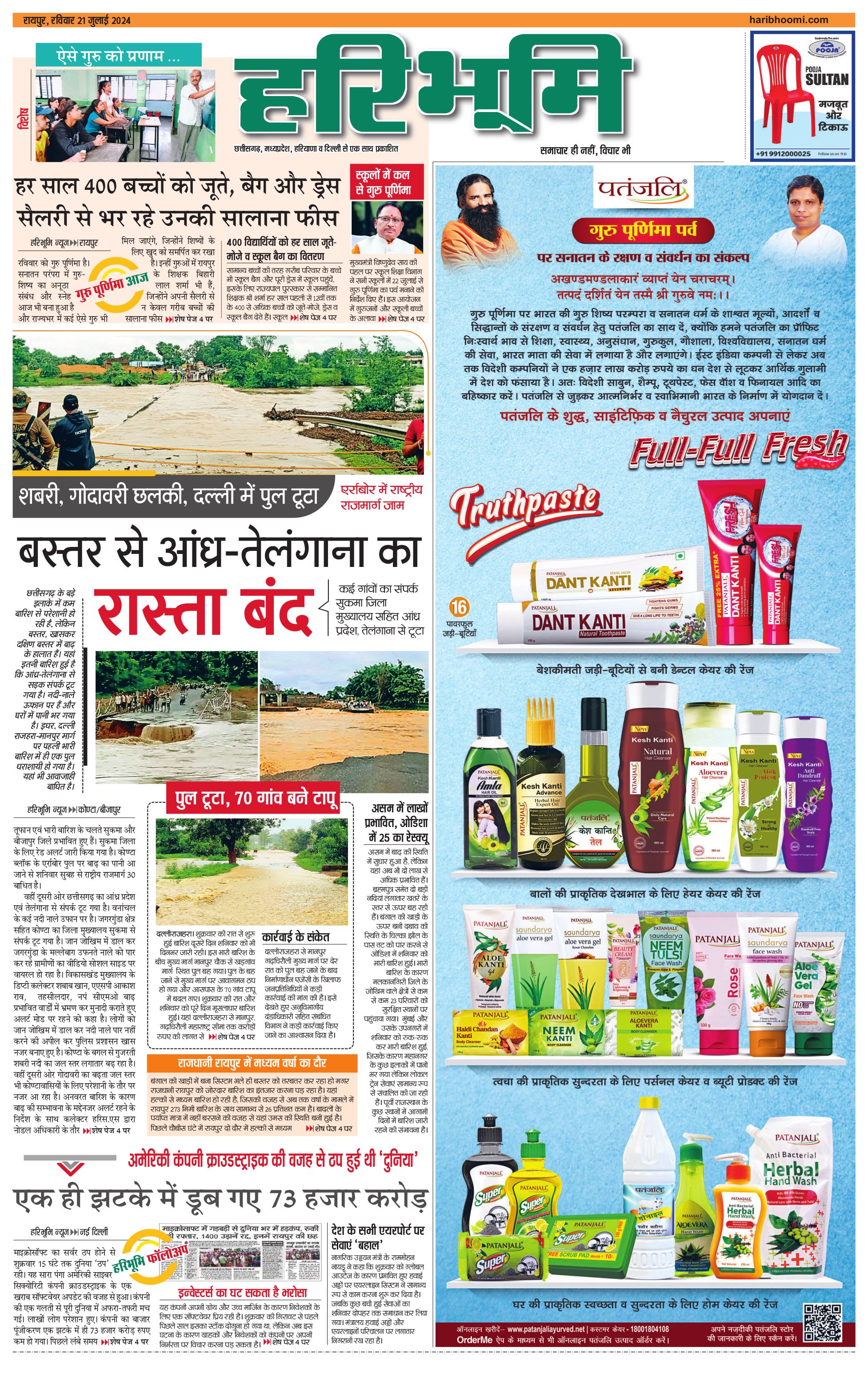 रायपुर मुख्य संस्करण - 21 Jul 2024 - - Page 1
