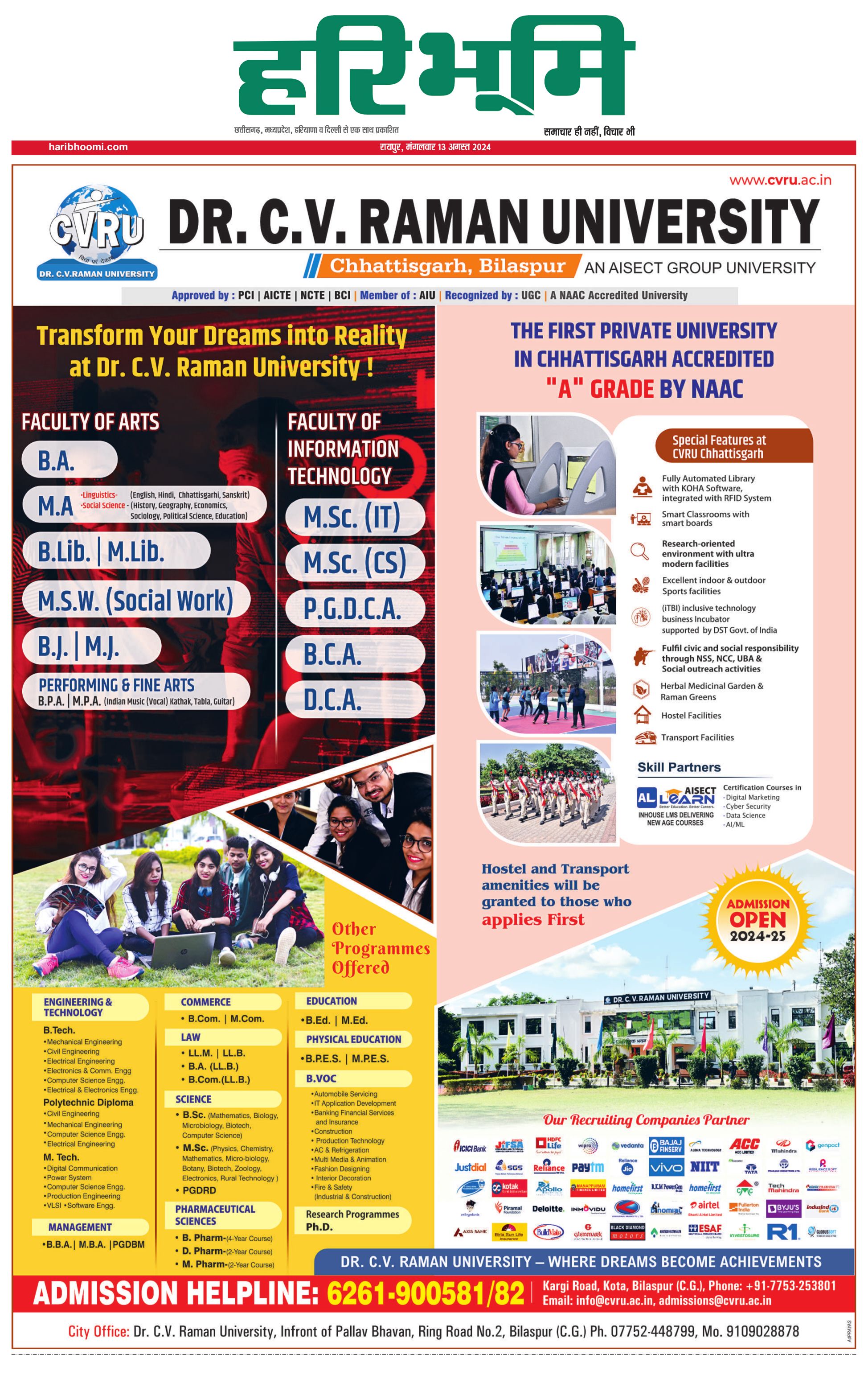 रायपुर मुख्य संस्करण - 13 Aug 2024 - - Page 1