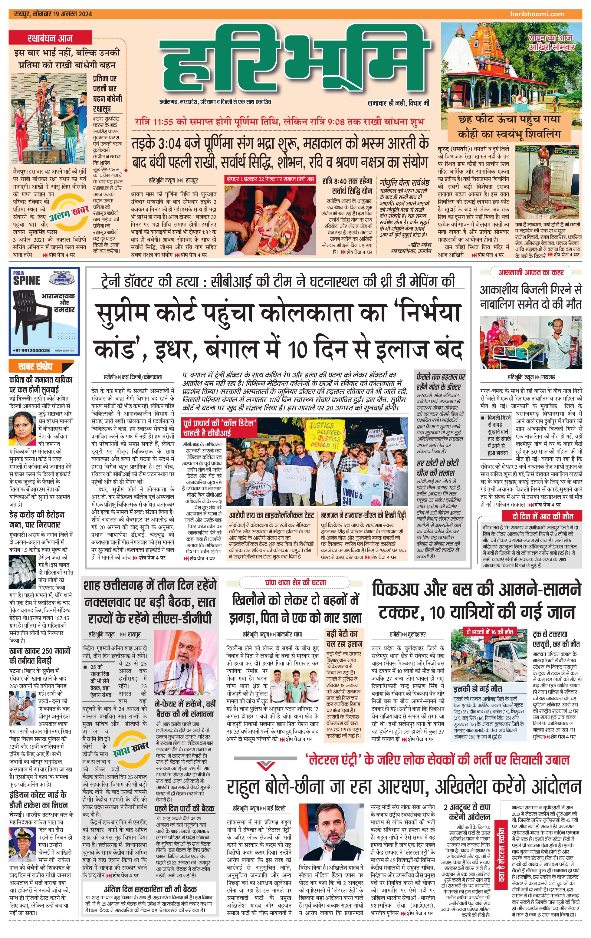 रायपुर मुख्य संस्करण - 19 Aug 2024 - - Page 1