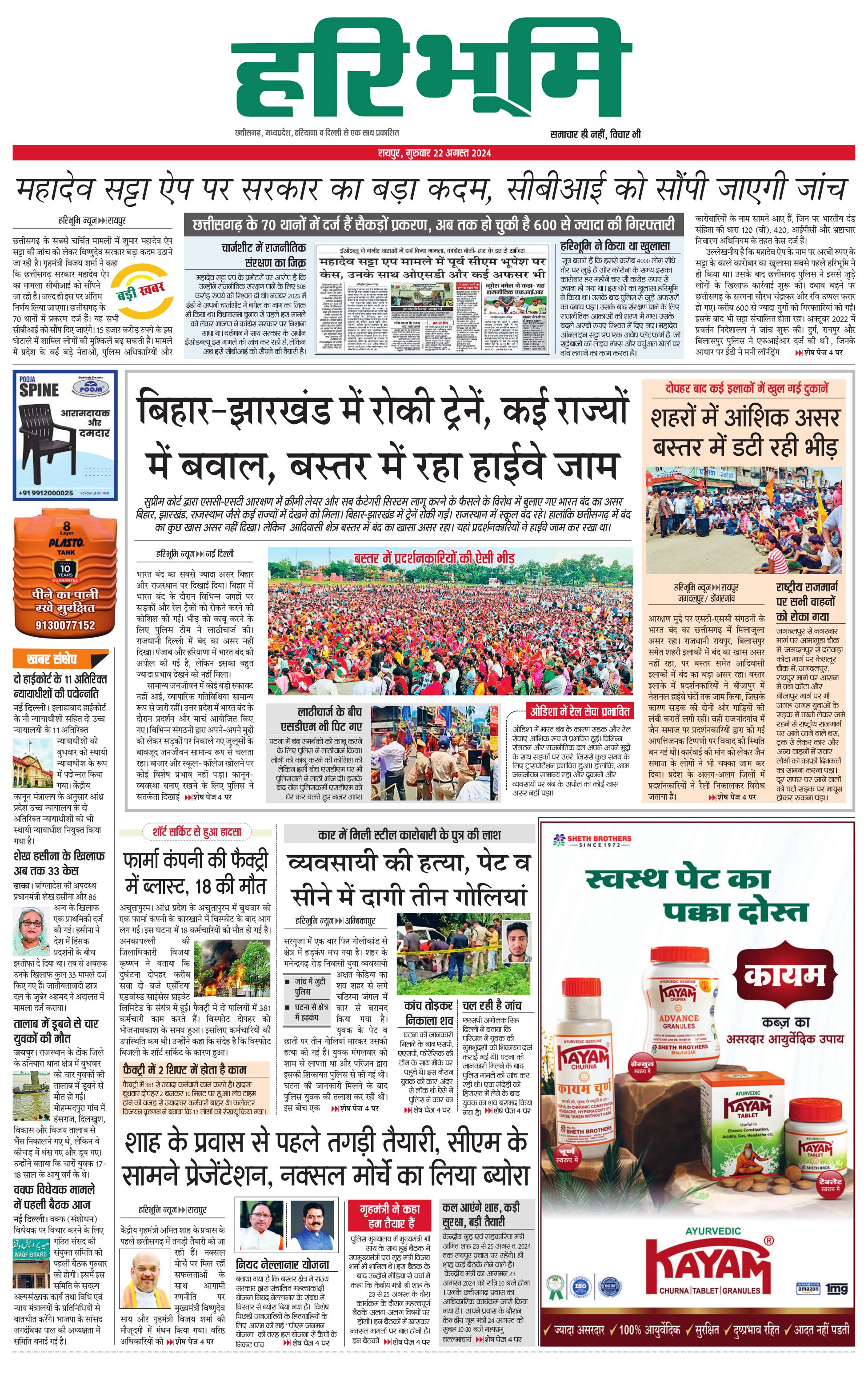 रायपुर मुख्य संस्करण - 22 Aug 2024 - - Page 1