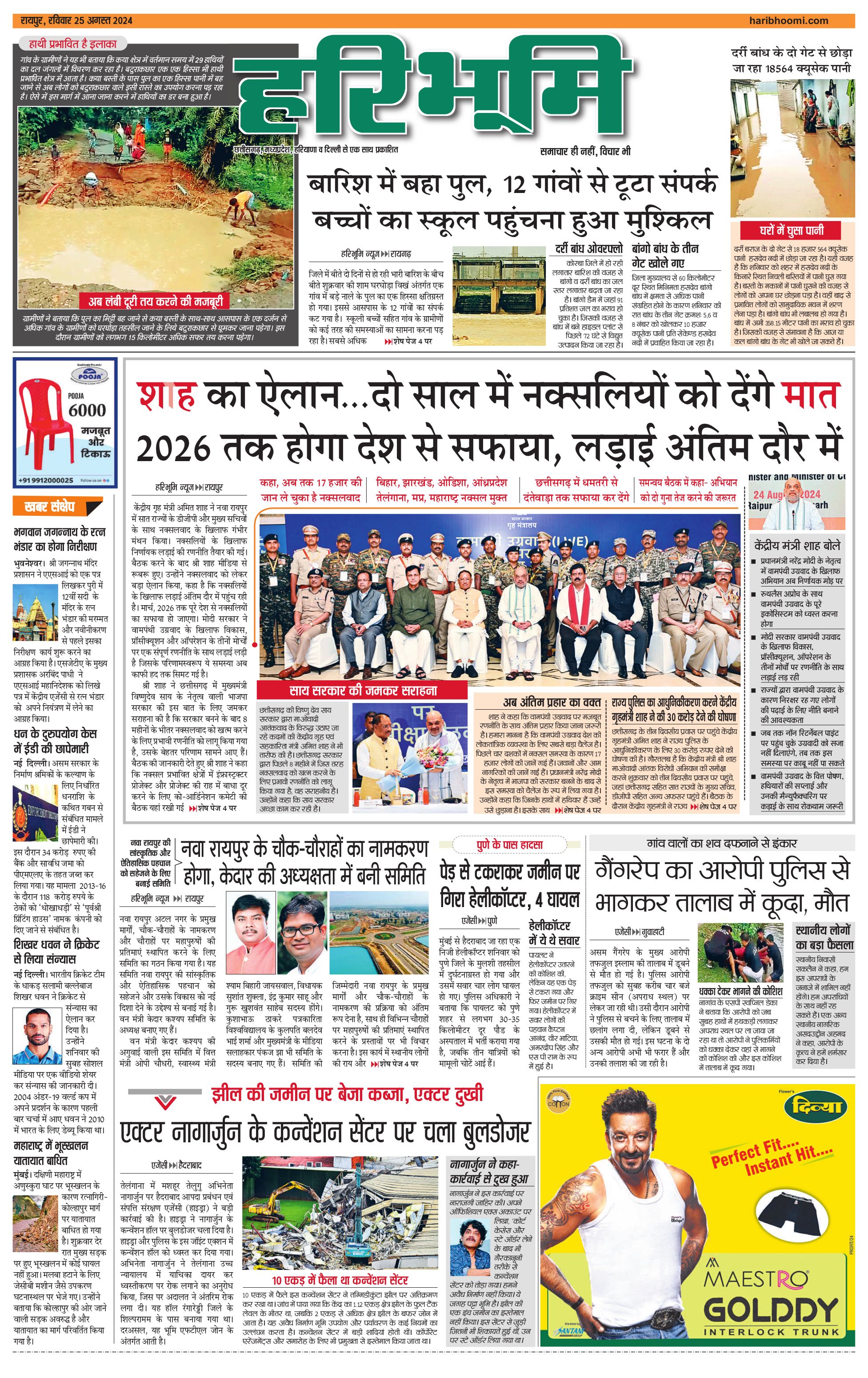 रायपुर मुख्य संस्करण - 25 Aug 2024 - - Page 1