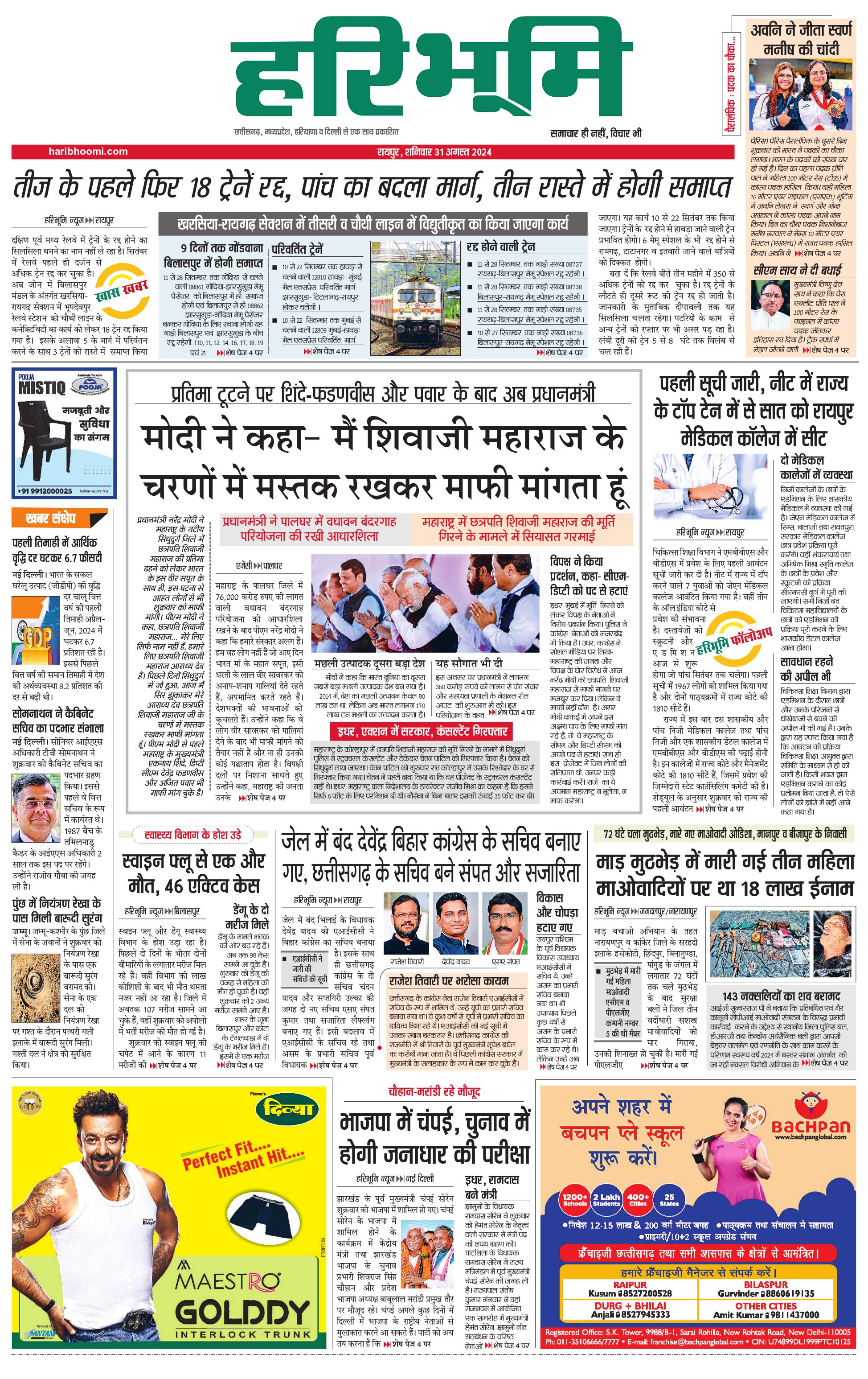 रायपुर मुख्य संस्करण - 31 Aug 2024 - - Page 1