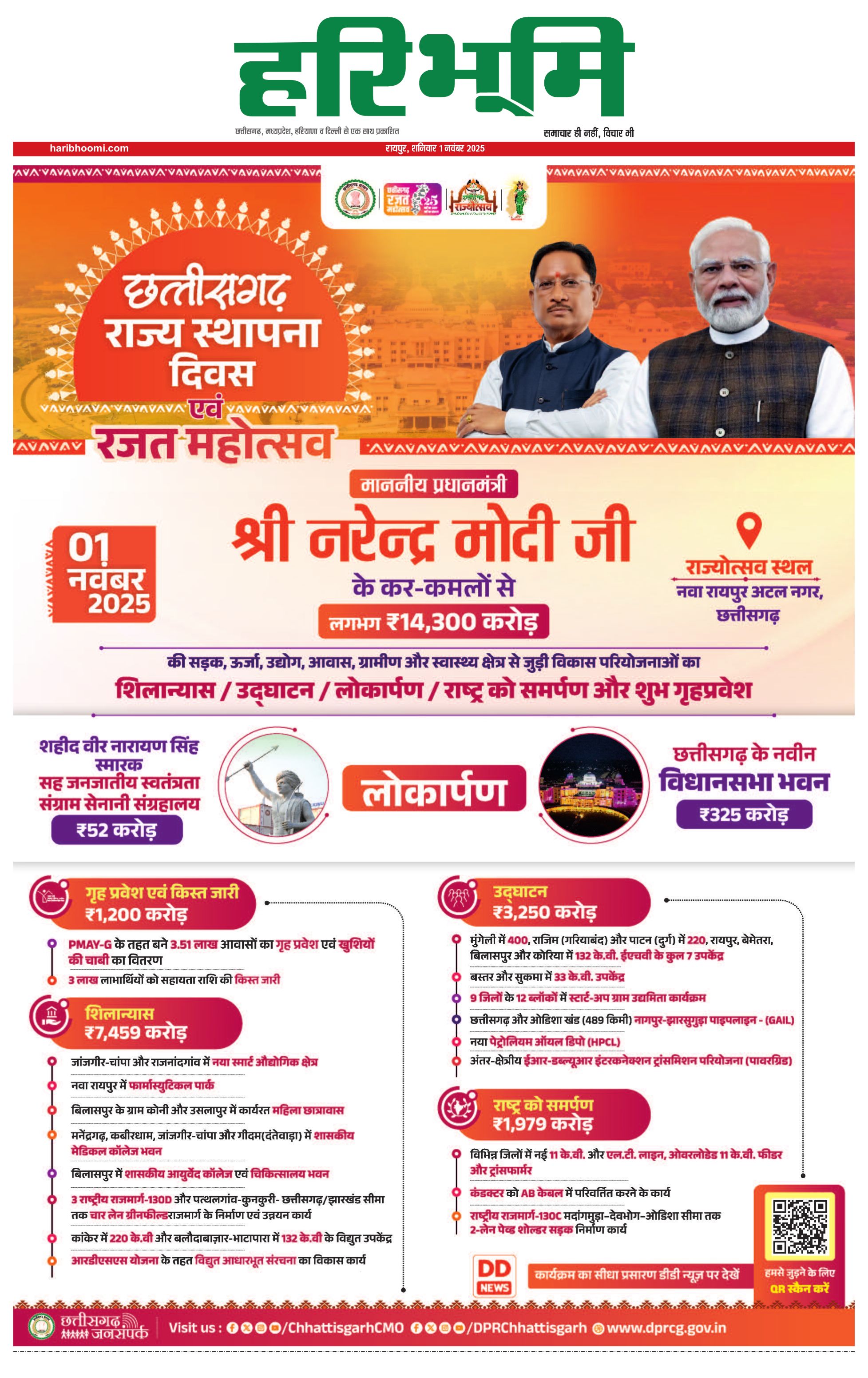 रायपुर मुख्य संस्करण - 01 Nov 2025 - - Page 1