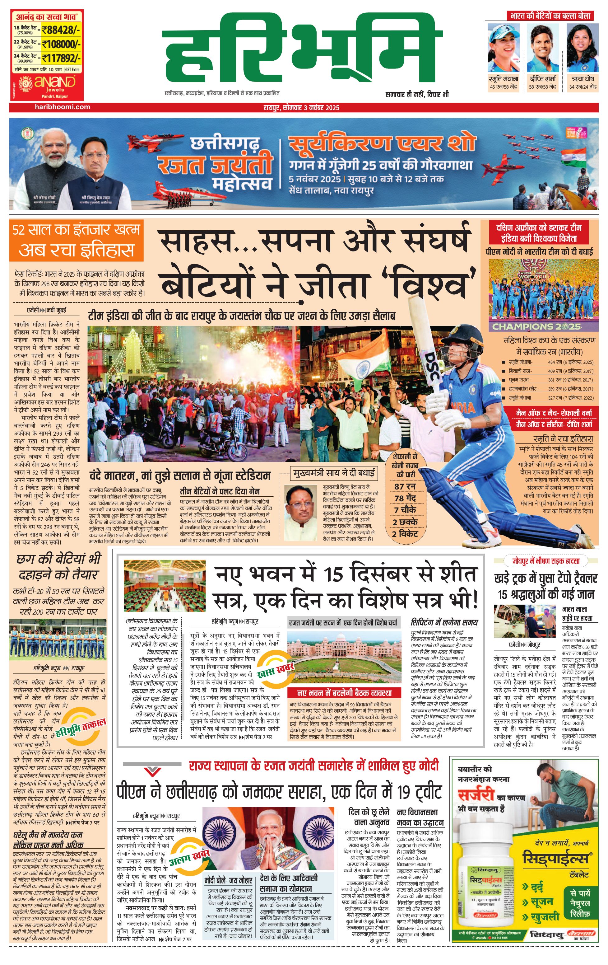 रायपुर मुख्य संस्करण - 03 Nov 2025 - - Page 1