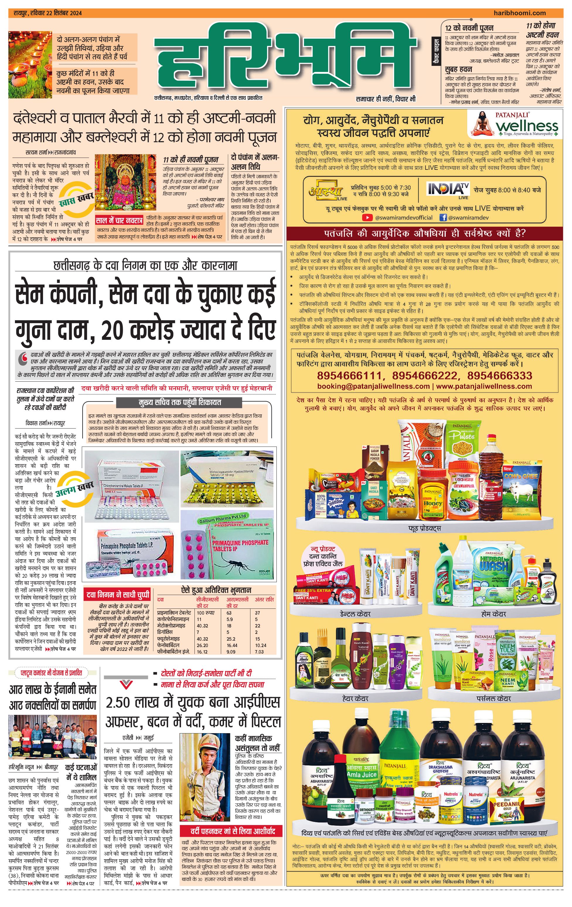 रायपुर मुख्य संस्करण - 22 Sep 2024 - - Page 1