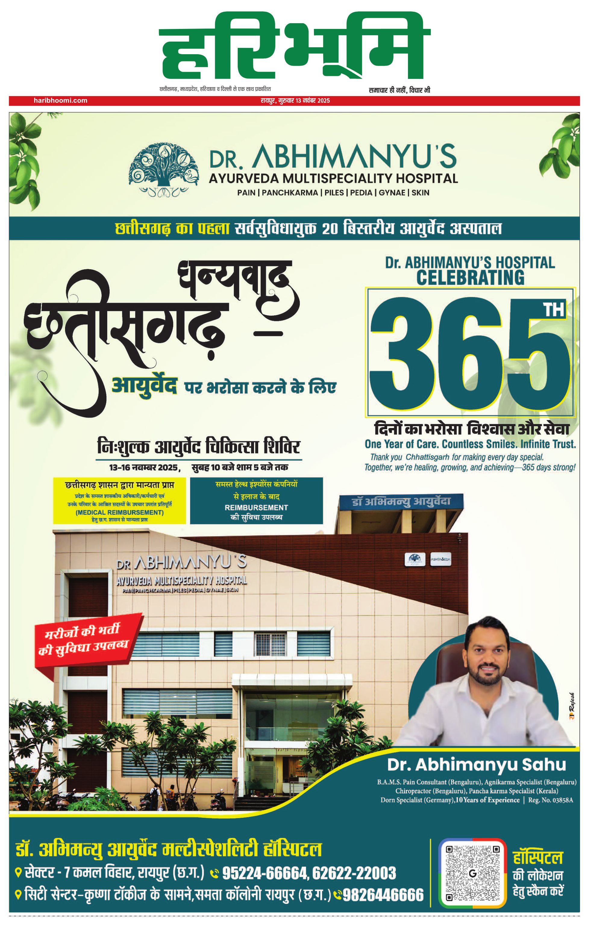 रायपुर मुख्य संस्करण - 13 Nov 2025 - - Page 1