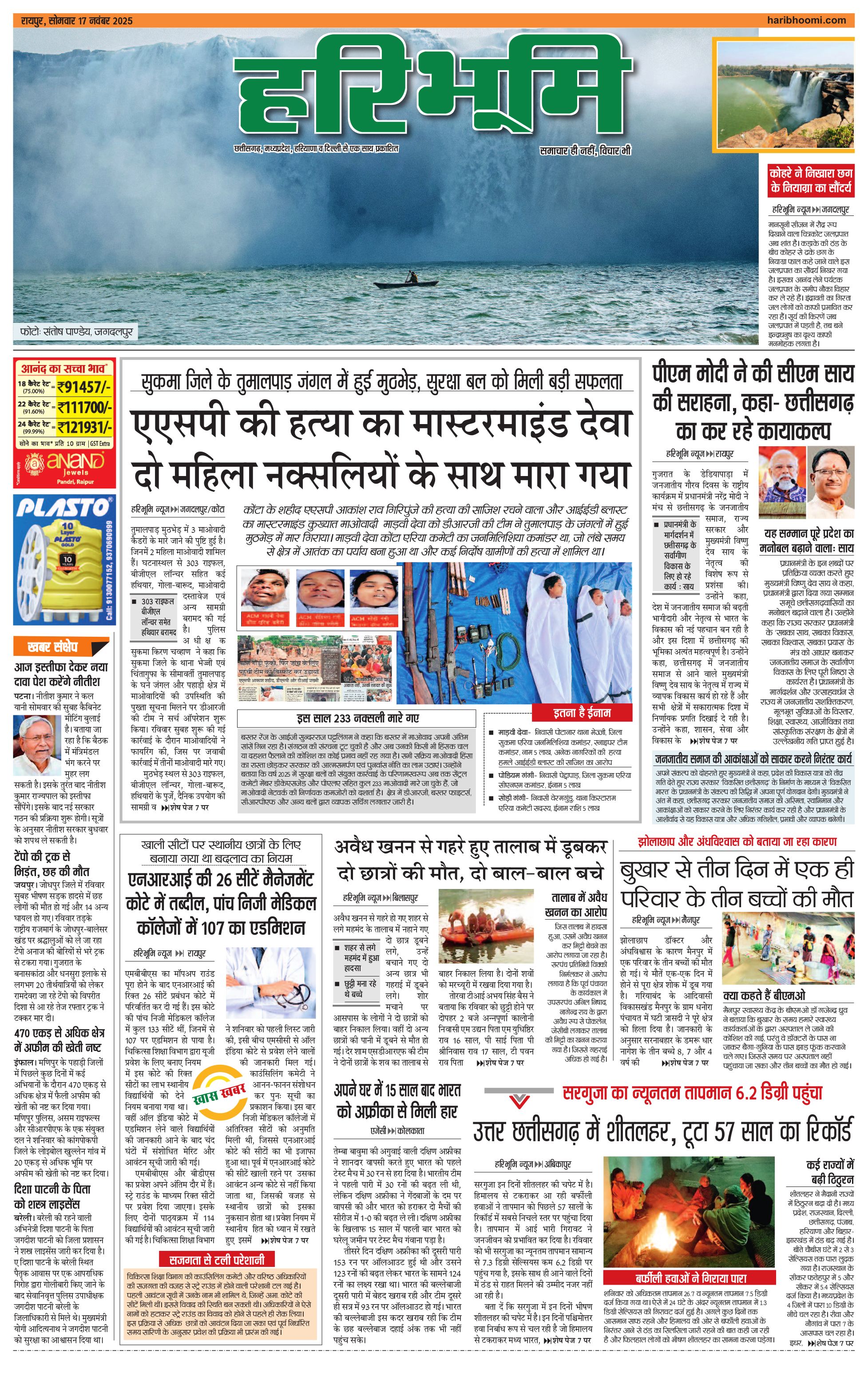 रायपुर मुख्य संस्करण - 17 Nov 2025 - - Page 1