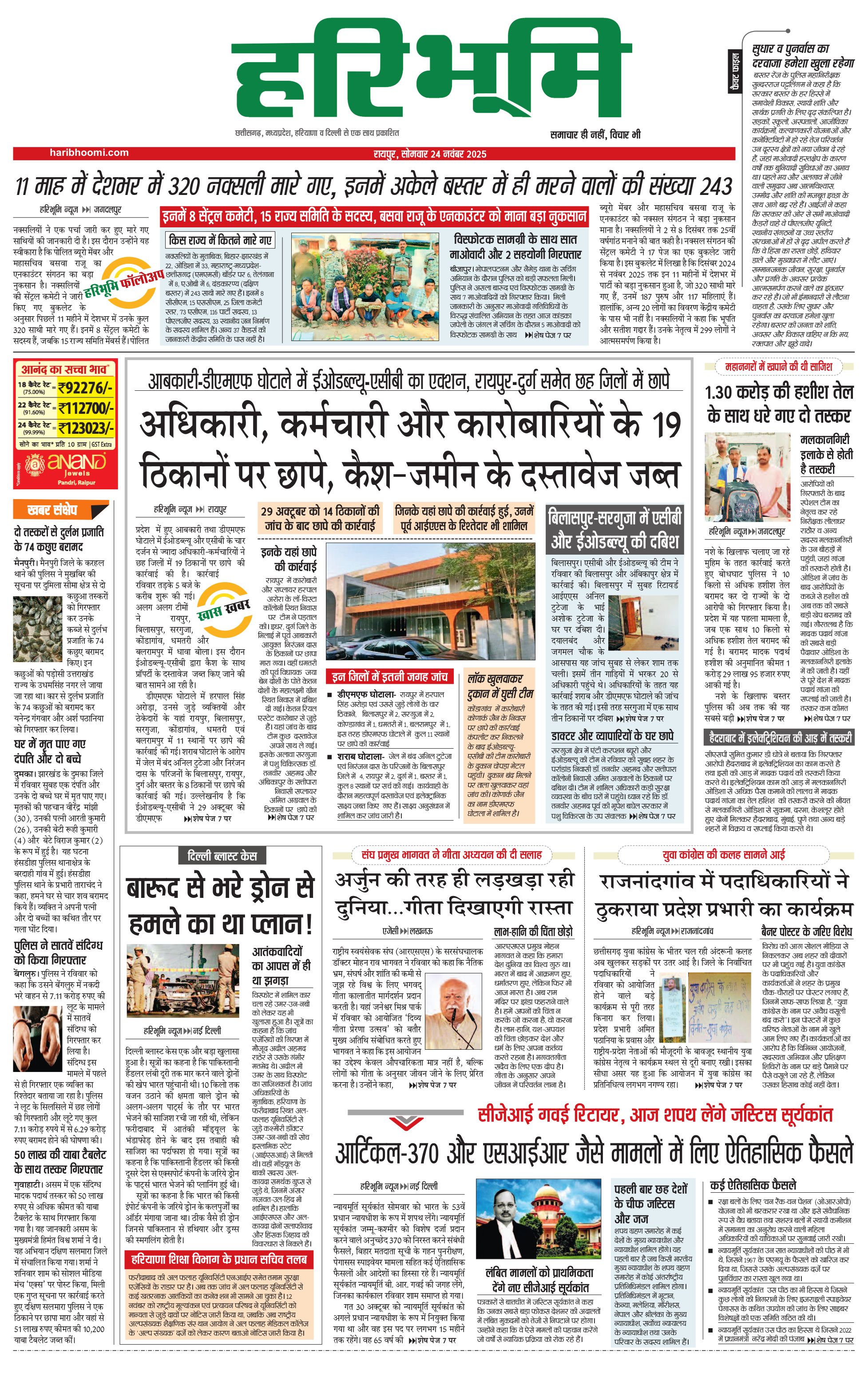 रायपुर मुख्य संस्करण - 24 Nov 2025 - - Page 1