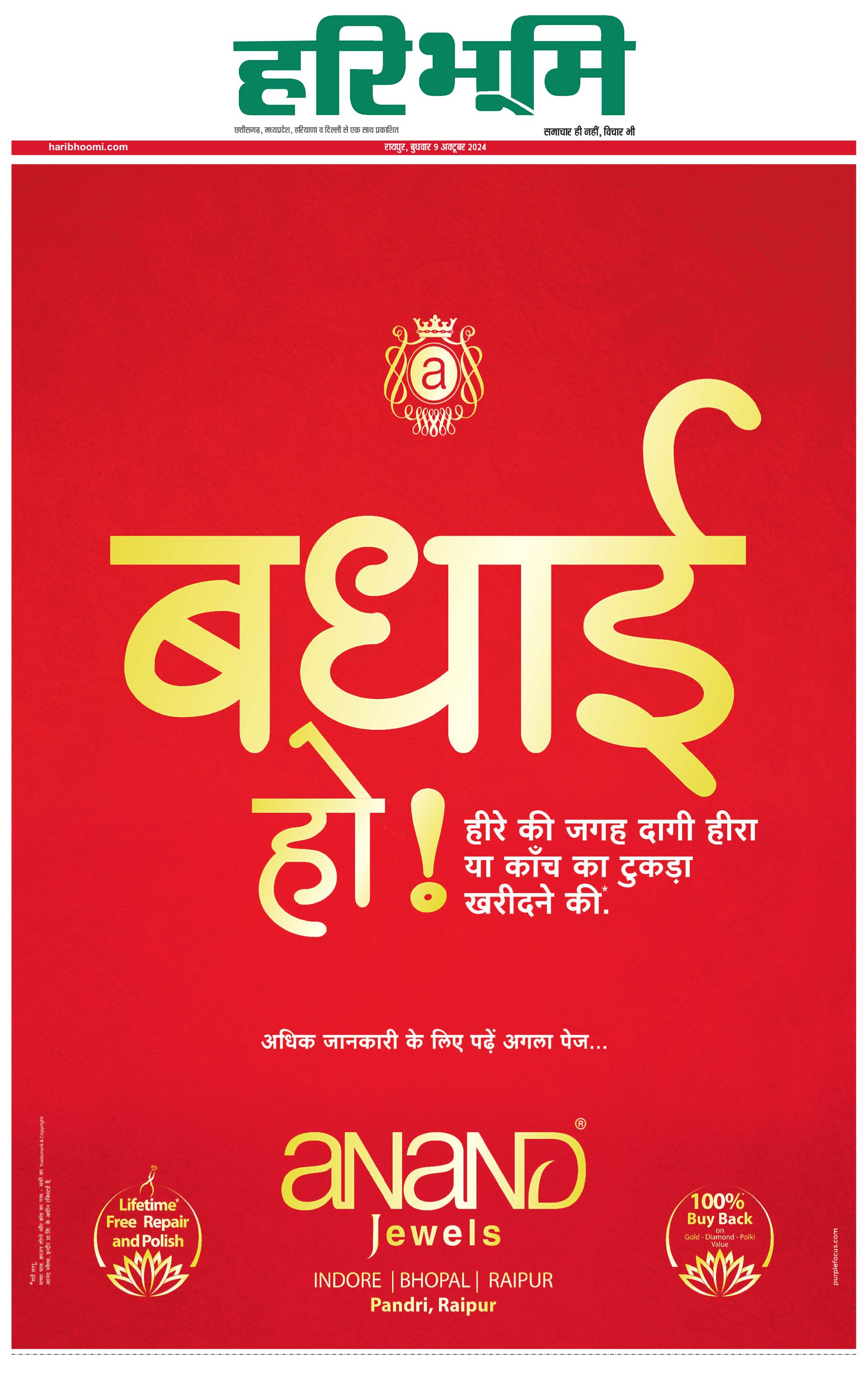 रायपुर मुख्य संस्करण - 09 Oct 2024 - - Page 1