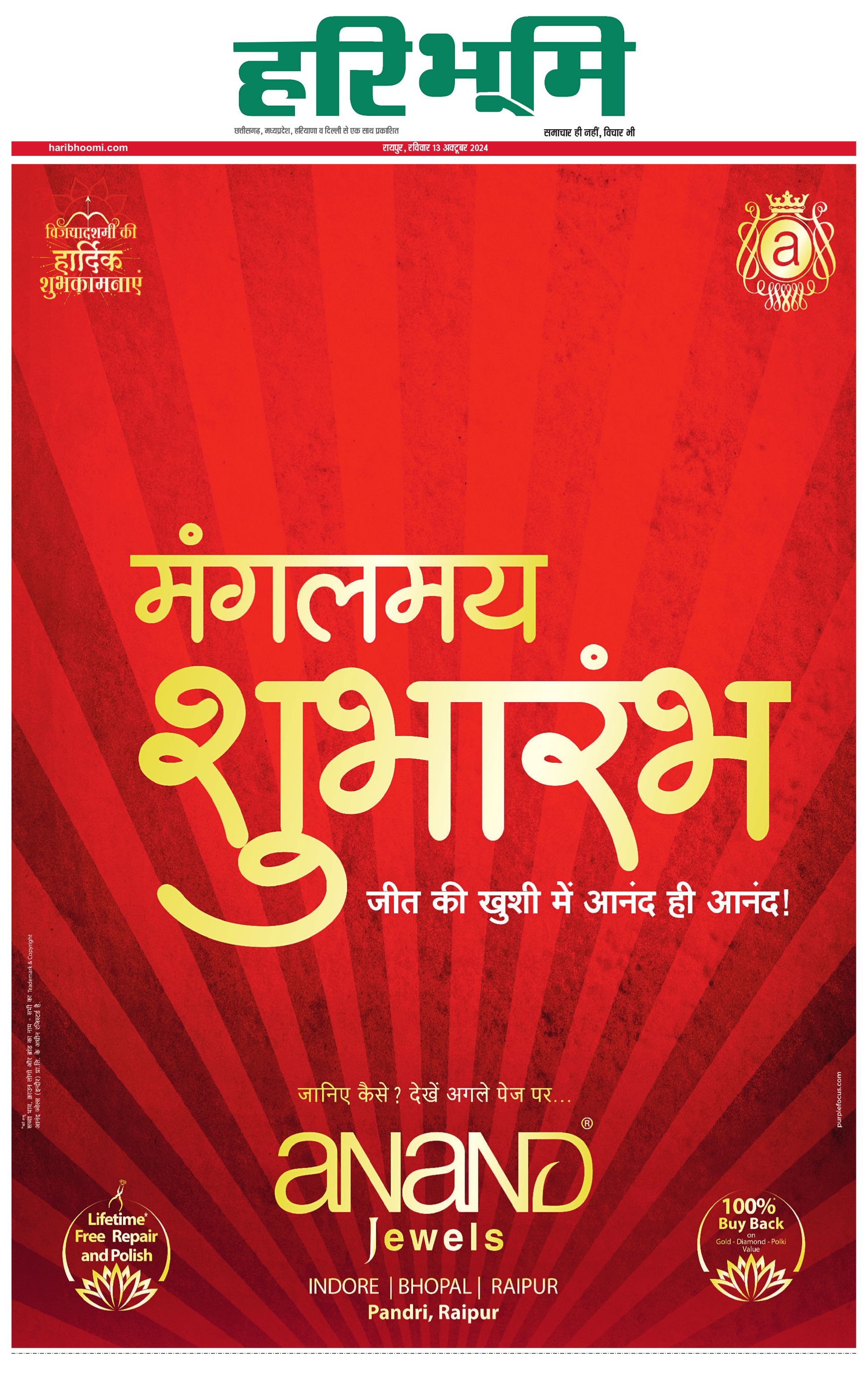रायपुर मुख्य संस्करण - 13 Oct 2024 - - Page 1