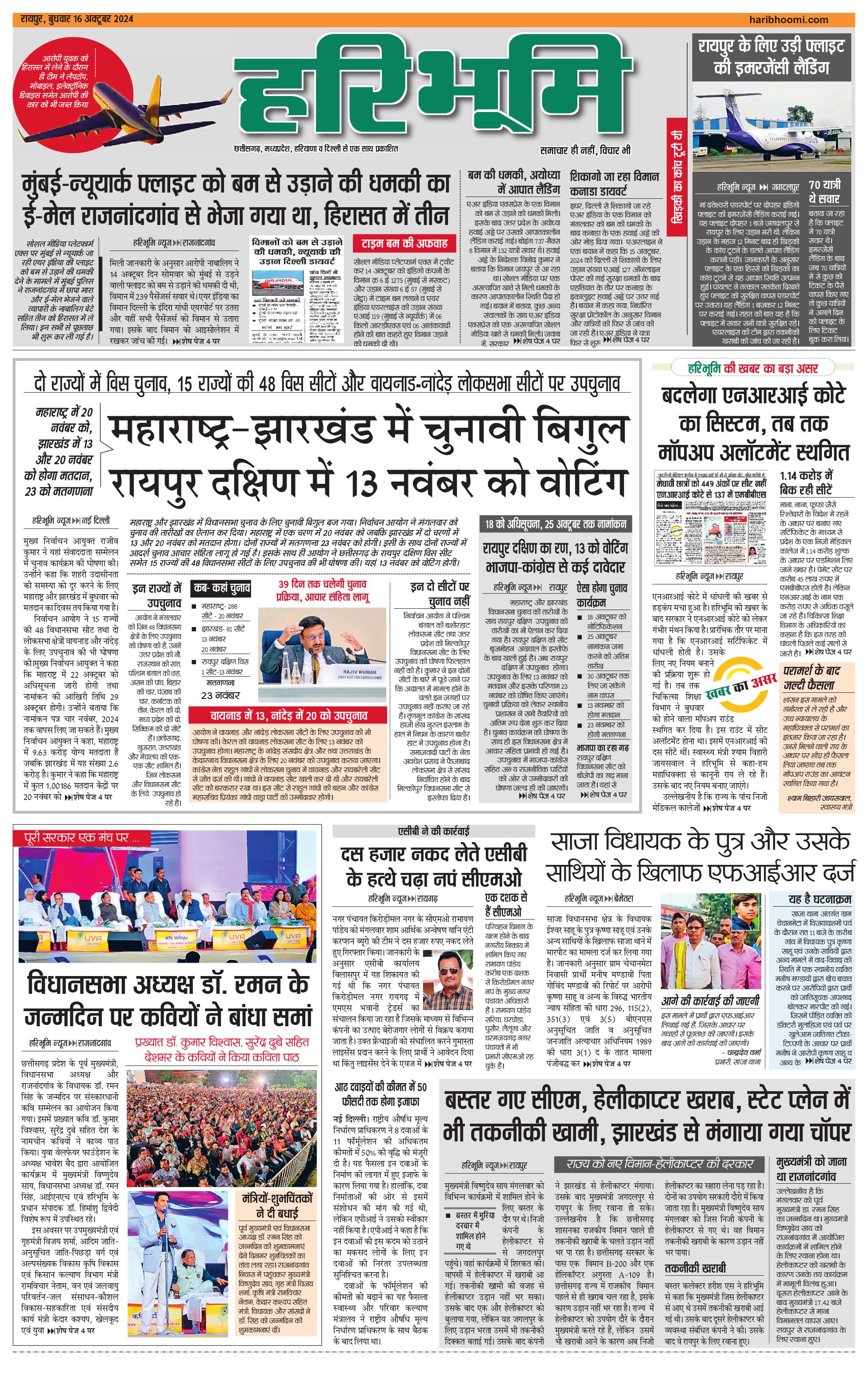 रायपुर मुख्य संस्करण - 16 Oct 2024 - - Page 1