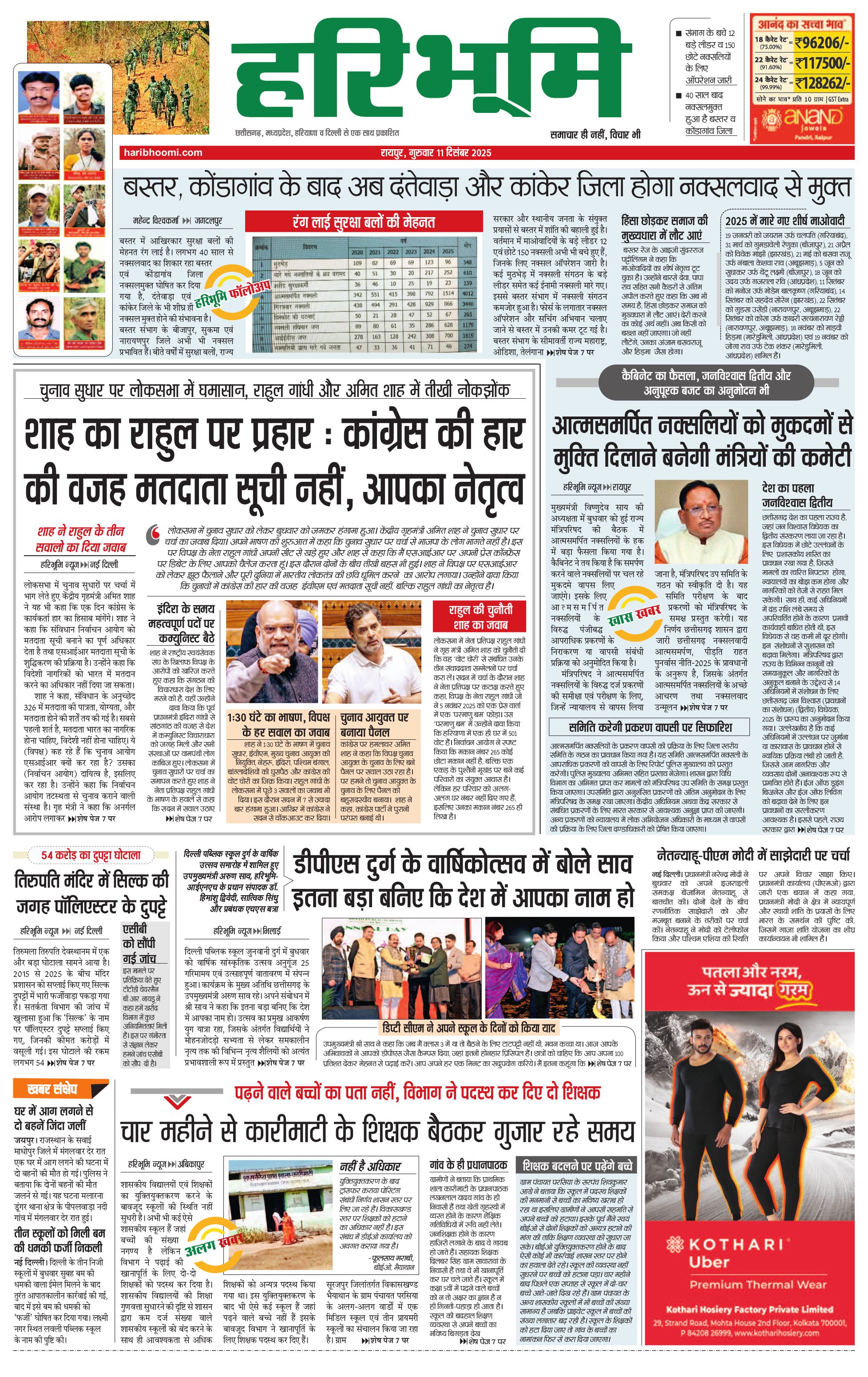 रायपुर मुख्य संस्करण - 11 Dec 2025 - - Page 1