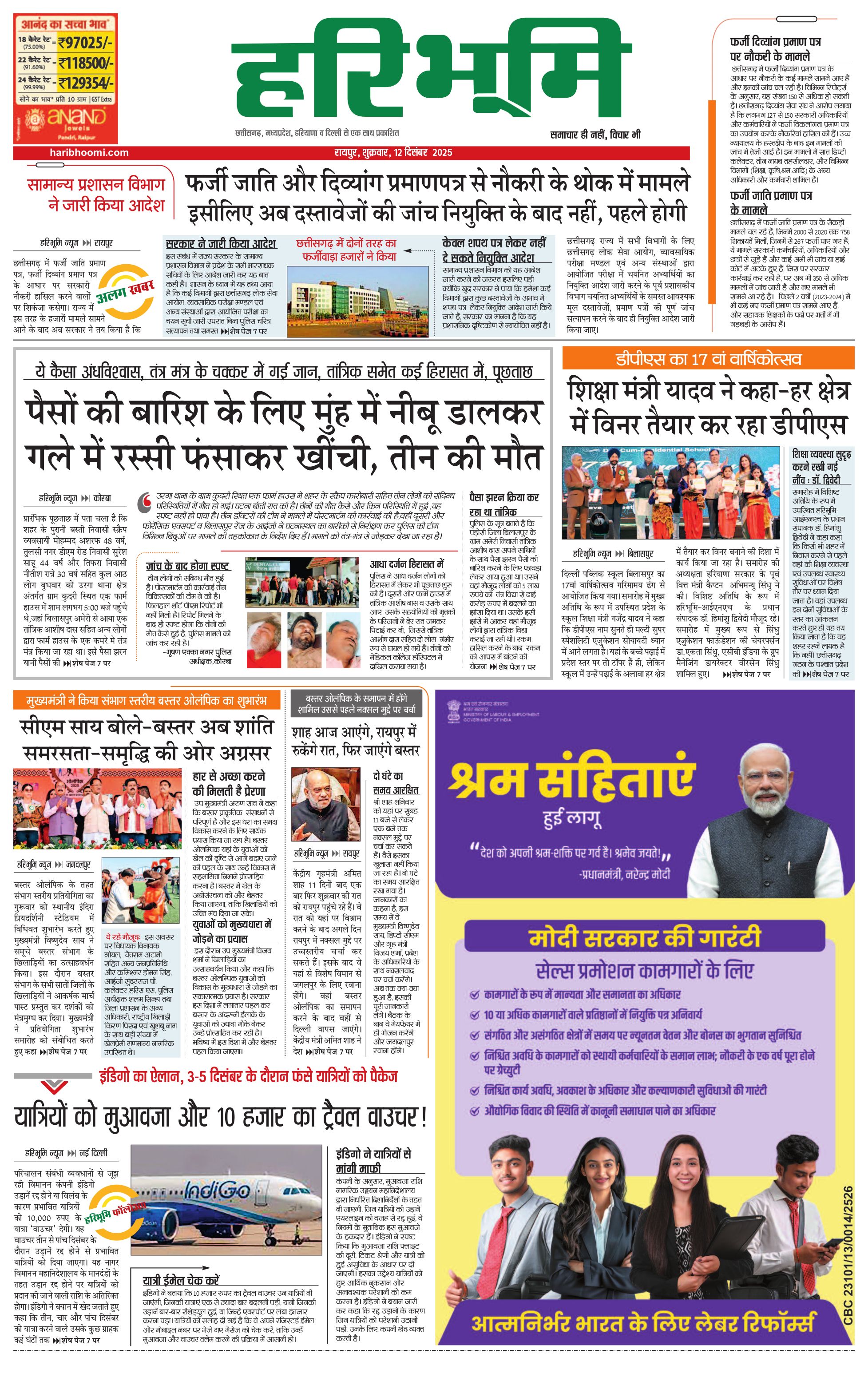 रायपुर मुख्य संस्करण - 12 Dec 2025 - - Page 1