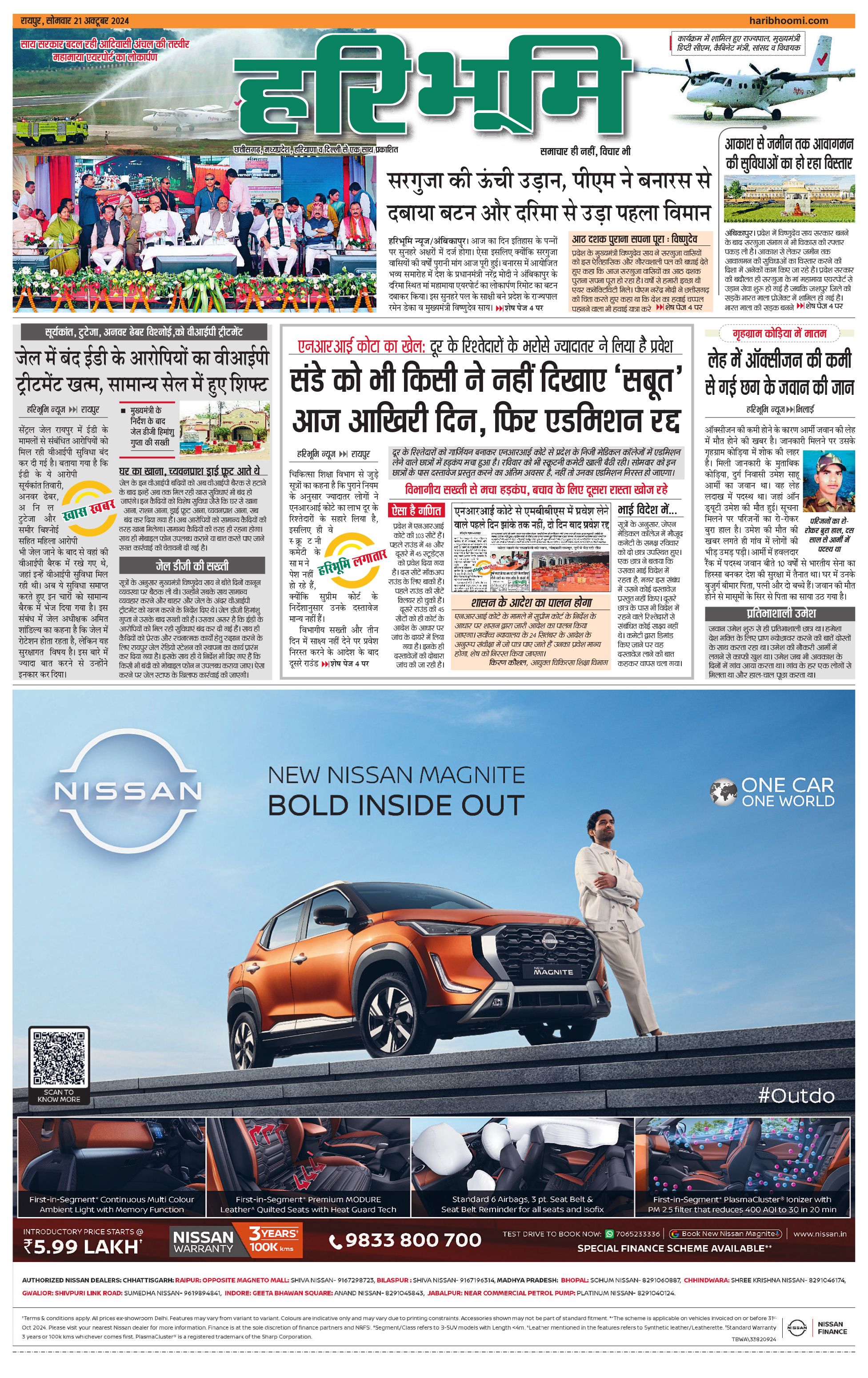 रायपुर मुख्य संस्करण - 21 Oct 2024 - - Page 1