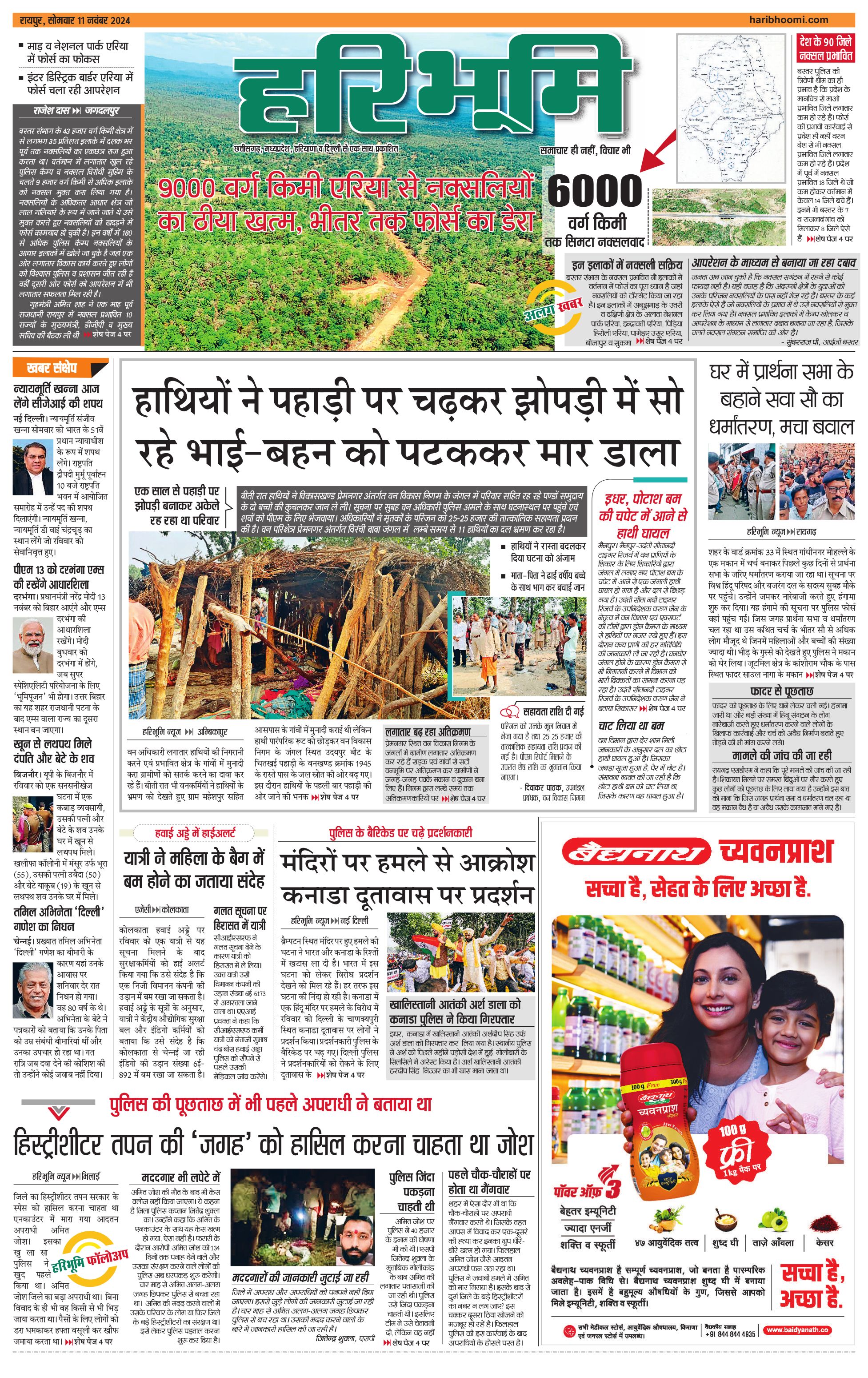 रायपुर मुख्य संस्करण - 11 Nov 2024 - - Page 1