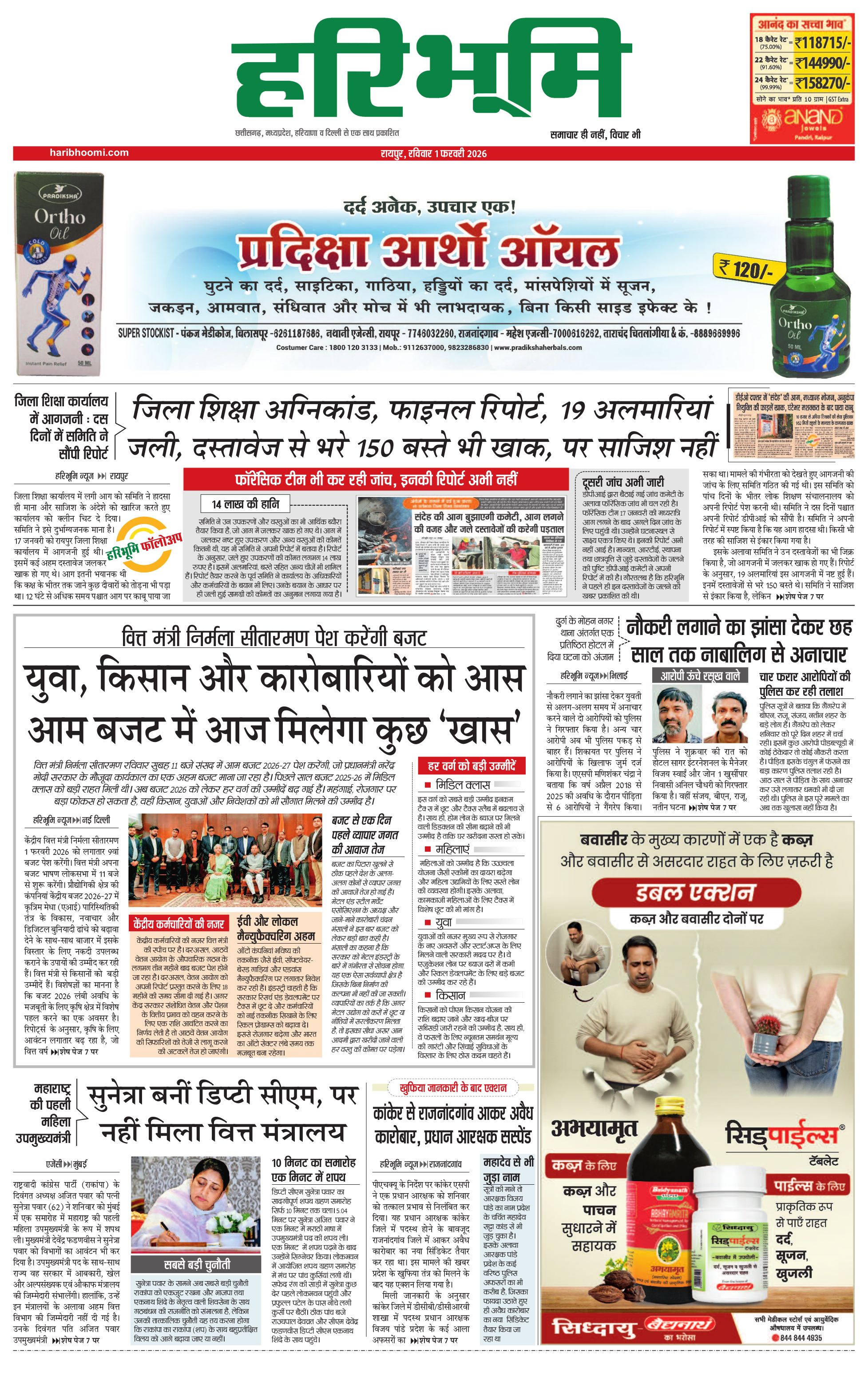 रायपुर मुख्य संस्करण - 01 Feb 2026 - - Page 1