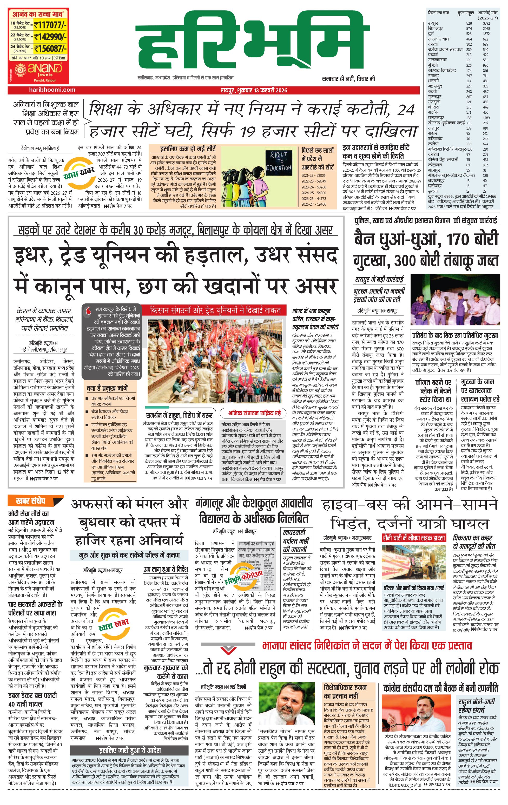 रायपुर मुख्य संस्करण - 13 Feb 2026 - - Page 1