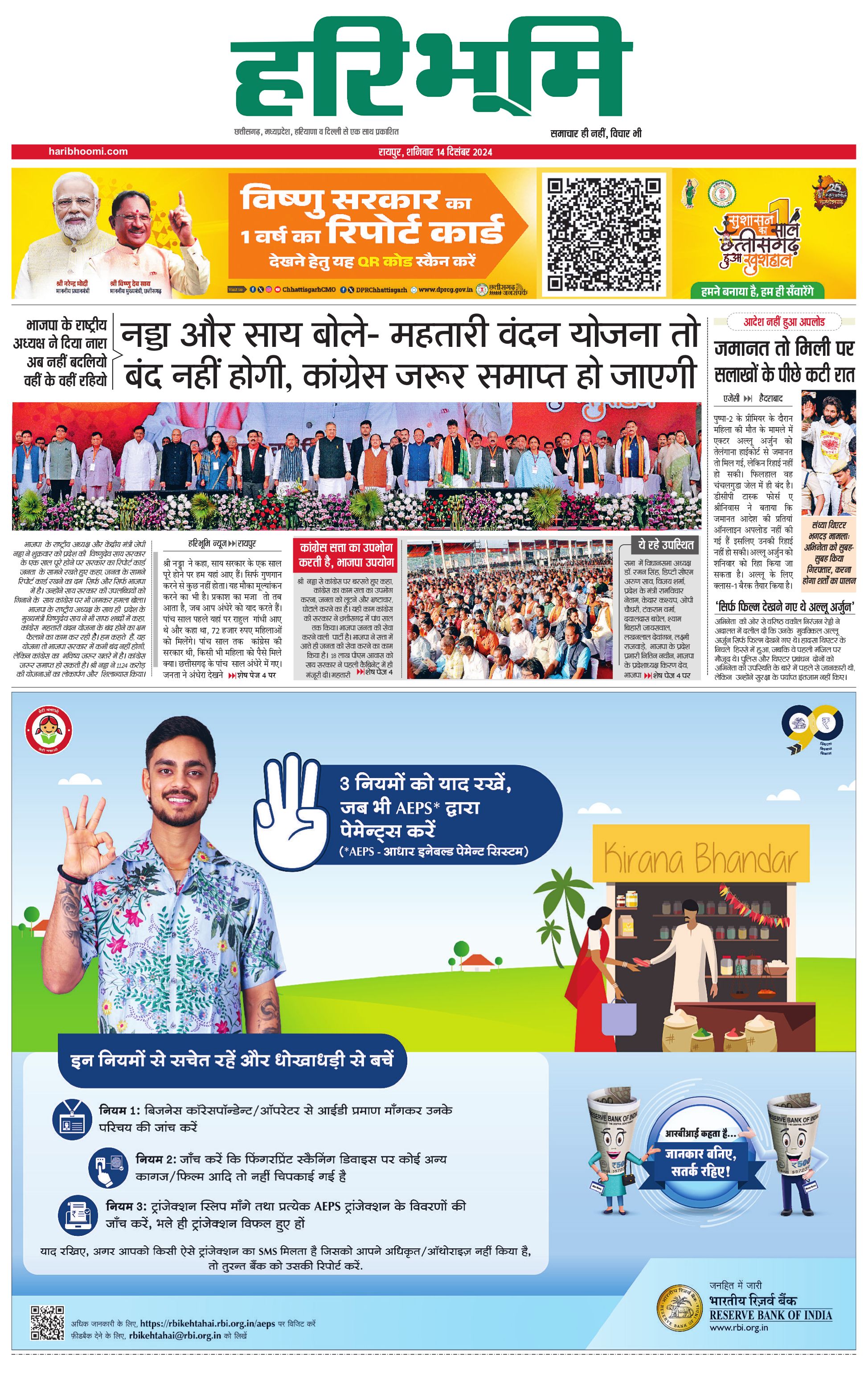 रायपुर मुख्य संस्करण - 14 Dec 2024 - - Page 1