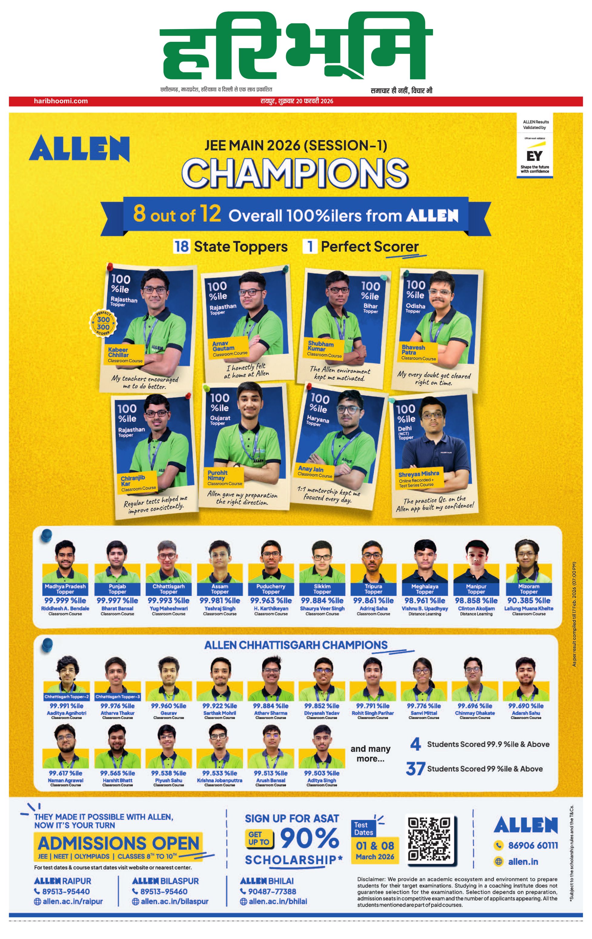 रायपुर मुख्य संस्करण - 20 Feb 2026 - - Page 1