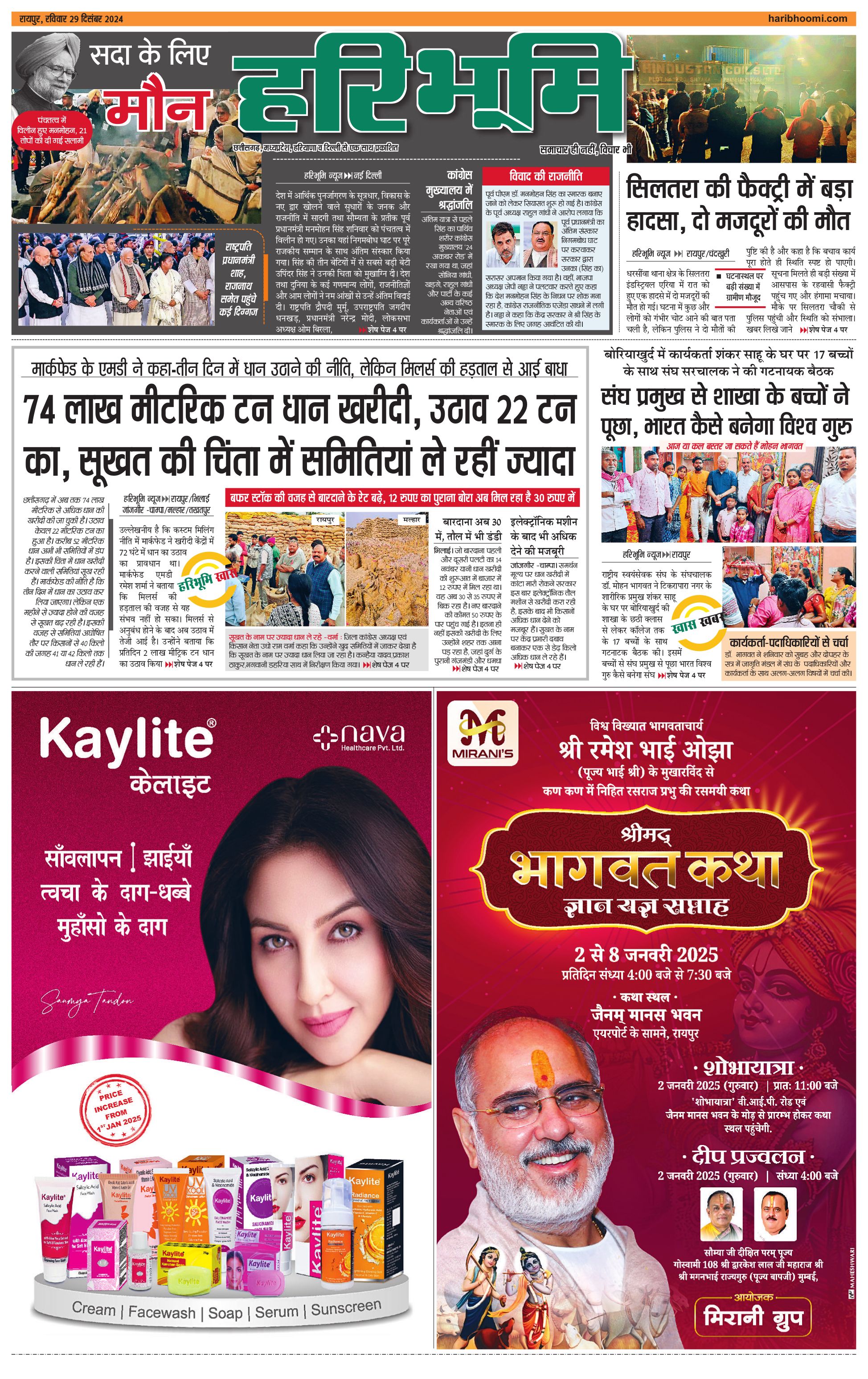 रायपुर मुख्य संस्करण - 29 Dec 2024 - - Page 1